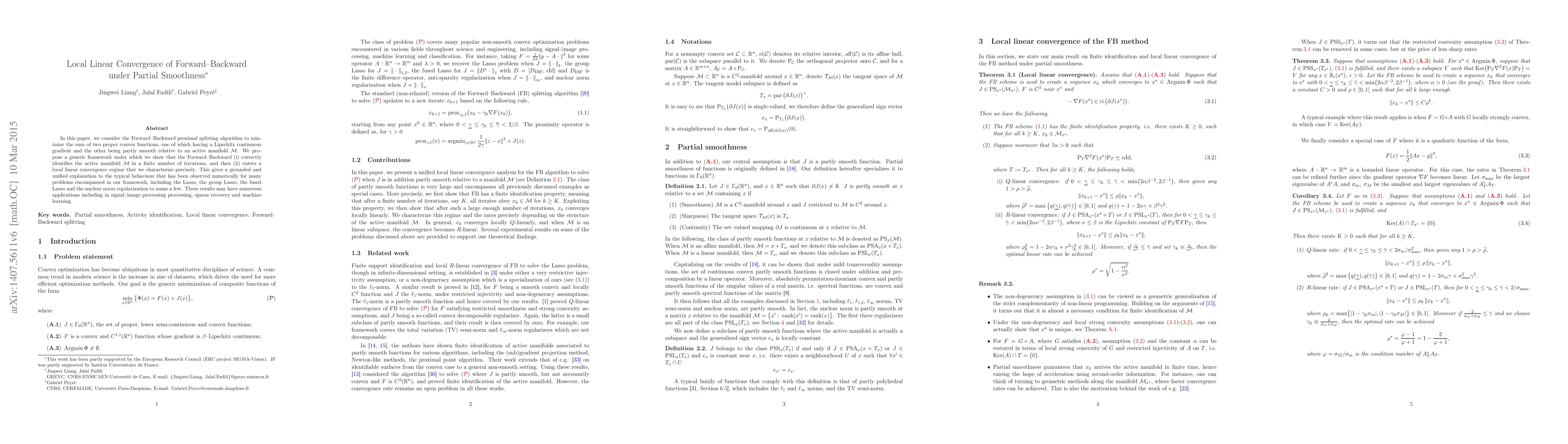 The paper proposes a framework for analyzing the Forward-Backward algorithm with partial smoothness, showing it correctly identifies an active manifold in finite iterations and enters local linear convergence under certain conditions, providing explanations for observed numerical behavior in various optimization problems.