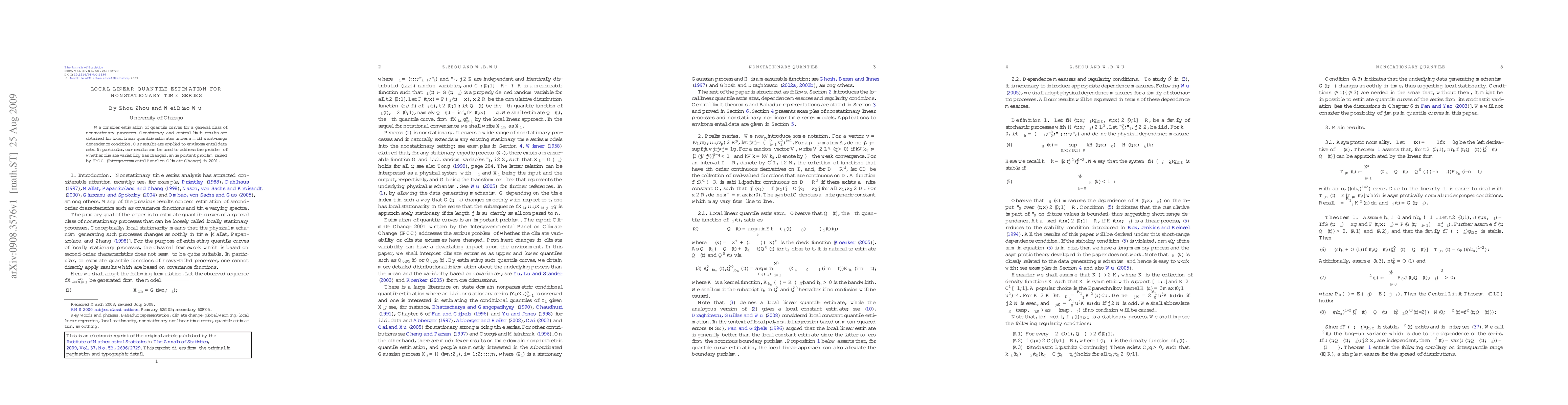 This paper proposes a local linear method for estimating quantiles in nonstationary time series, proving its consistency and central limit behavior under mild short-range dependence. The method is applied to environmental data, particularly to assess changes in climate variability as suggested by the IPCC.