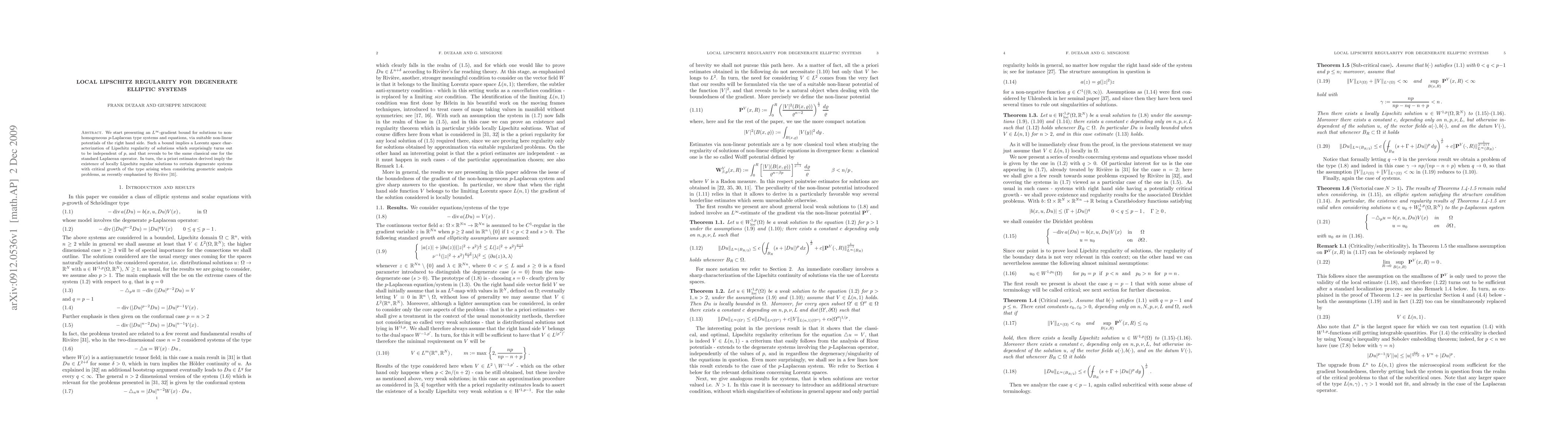 We start presenting an $L^{\infty}$-gradient bound for solutions to non-homogeneous $p$-Laplacean type systems and equations, via suitable non-linear potentials of the right hand side. Such a bound implies a Lorentz space characterization of Lipschitz regularity of solutions which surprisingly turns out to be independent of $p$, and that reveals to be the same classical one for the standard Laplacean operator. In turn, the a priori estimates derived imply the existence of locally Lipschitz regular solutions to certain degenerate systems with critical growth of the type arising when considering geometric analysis problems, as recently emphasized by Rivi\`ere