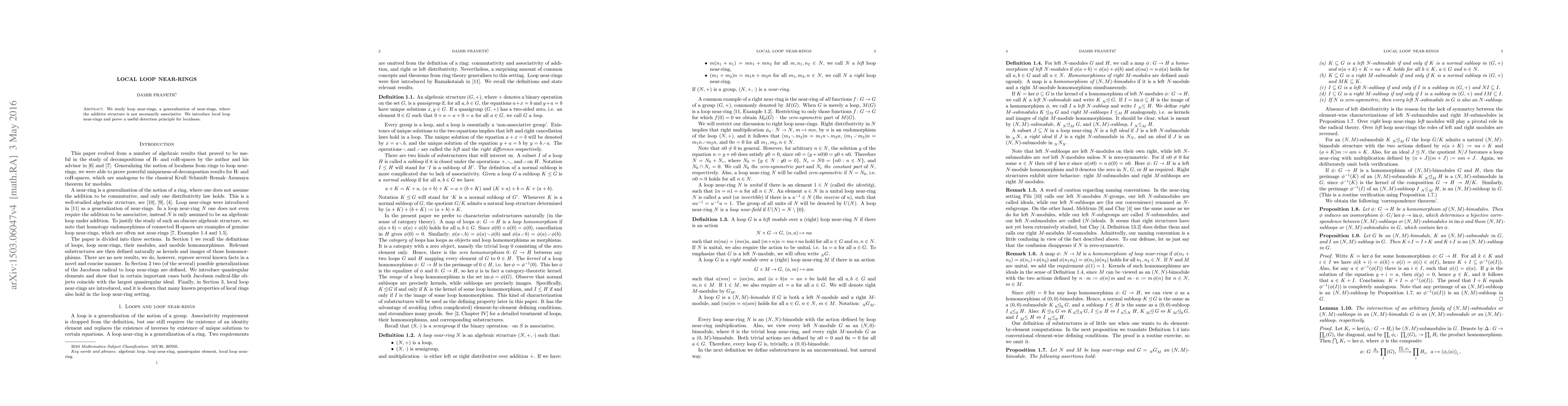 Summary: This paper explores loop near-rings, extending near-rings by relaxing the associativity of the additive structure, introduces local loop near-rings, and establishes a detection principle for identifying local loop near-rings.
