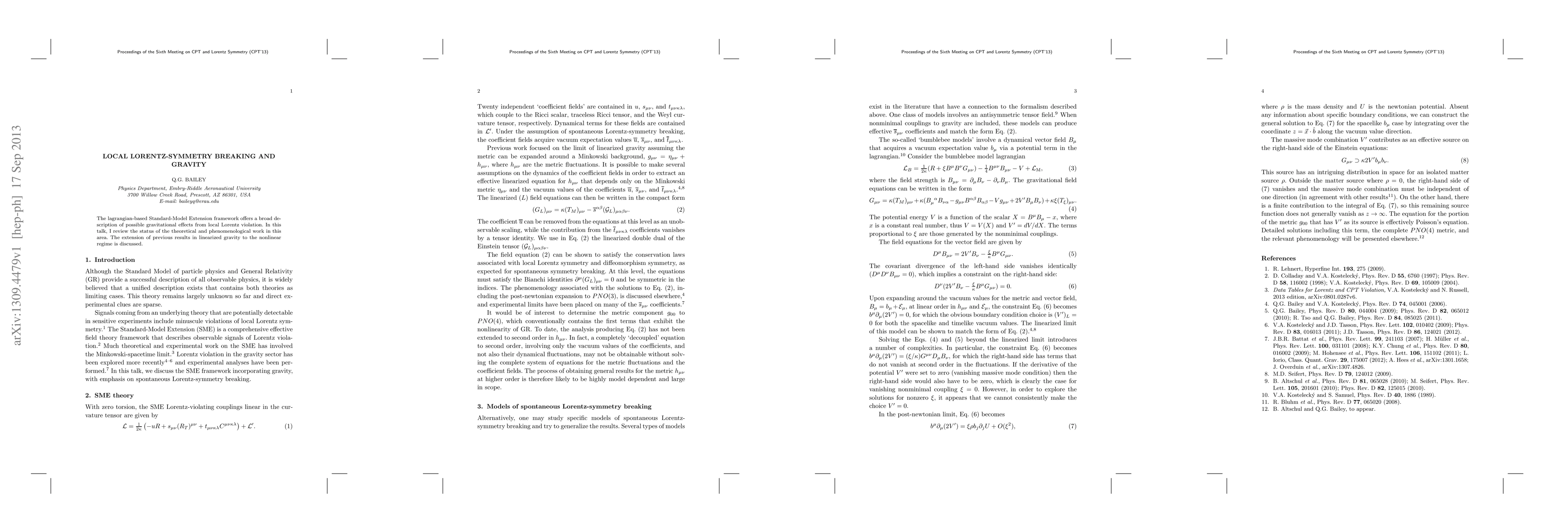 Research explores potential gravitational effects from local Lorentz symmetry breaking in the Standard-Model Extension framework, with implications for our understanding of gravity and its relationship to other fundamental forces.