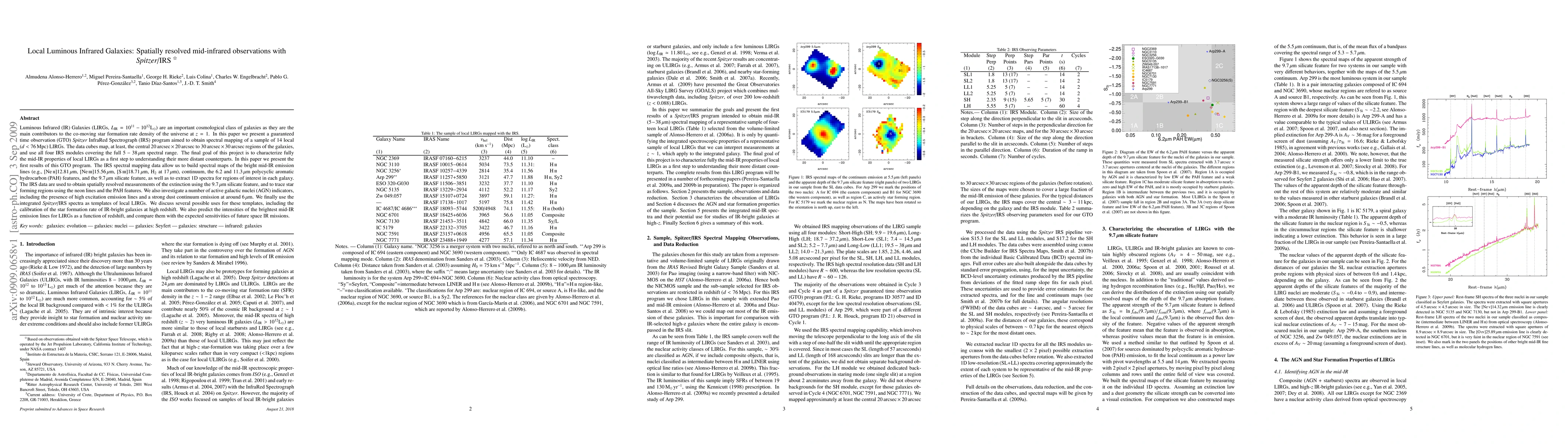 This study uses Spitzer/IRS to map mid-infrared emission lines and continuum in 14 local luminous infrared galaxies, providing spatially resolved measurements of extinction and star-forming regions, as well as templates for calibrating star formation rates at high redshift.
