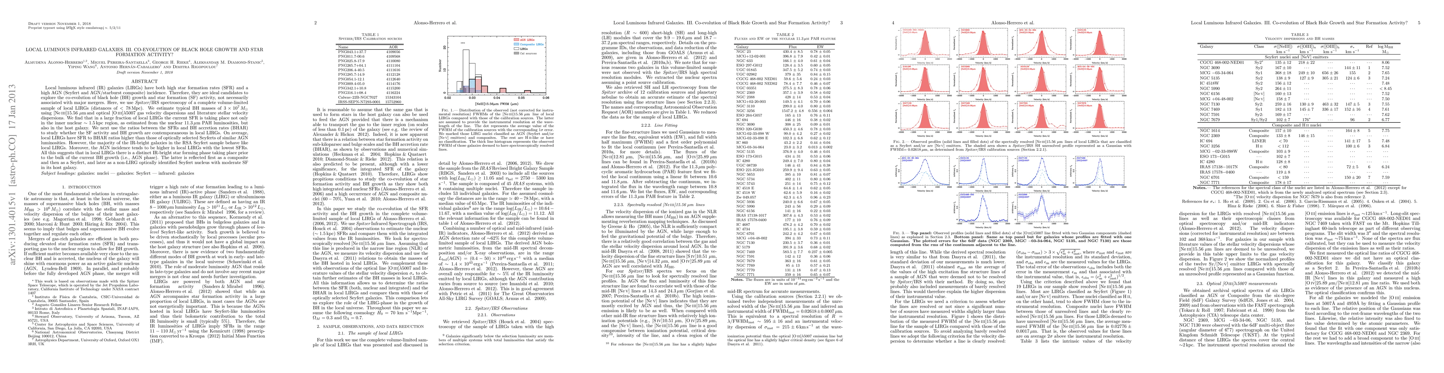 This paper investigates the co-evolution of black hole growth and star formation in local luminous infrared galaxies (LIRGs), finding that the current star formation occurs both in the central regions and throughout the host galaxy. The study suggests that star formation precedes significant black hole growth, indicating a distinct IR-bright star-forming phase before the AGN activity.