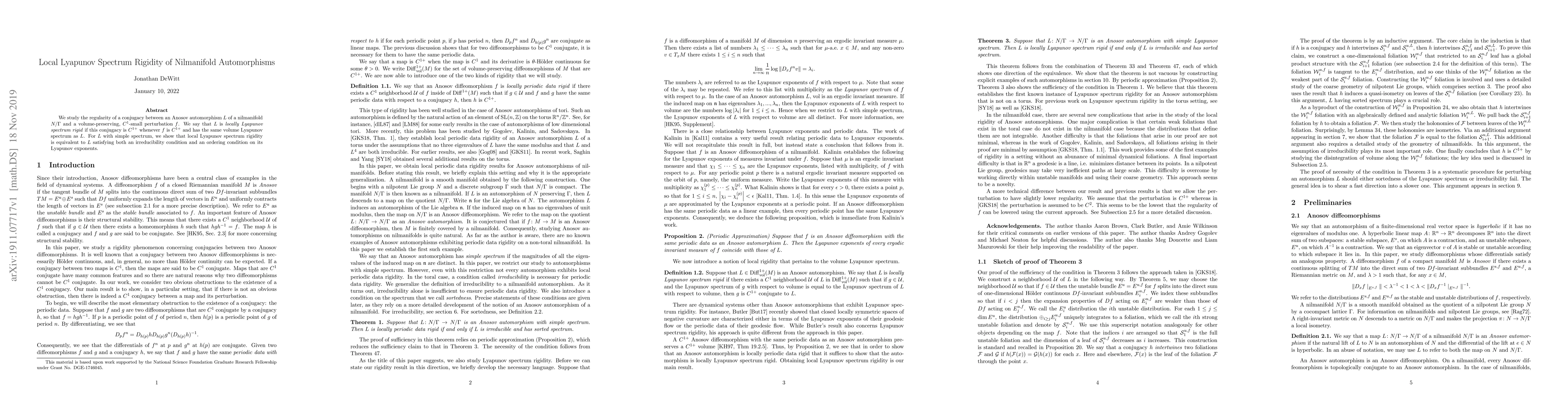 This paper investigates the local Lyapunov spectrum rigidity of nilmanifold automorphisms, proving that such rigidity for an Anosov automorphism $L$ is equivalent to $L$ meeting both an irreducibility condition and an ordering condition on its Lyapunov exponents. The study focuses on the regularity of conjugacy between $L$ and small perturbations with matching volume Lyapunov spectrum.
