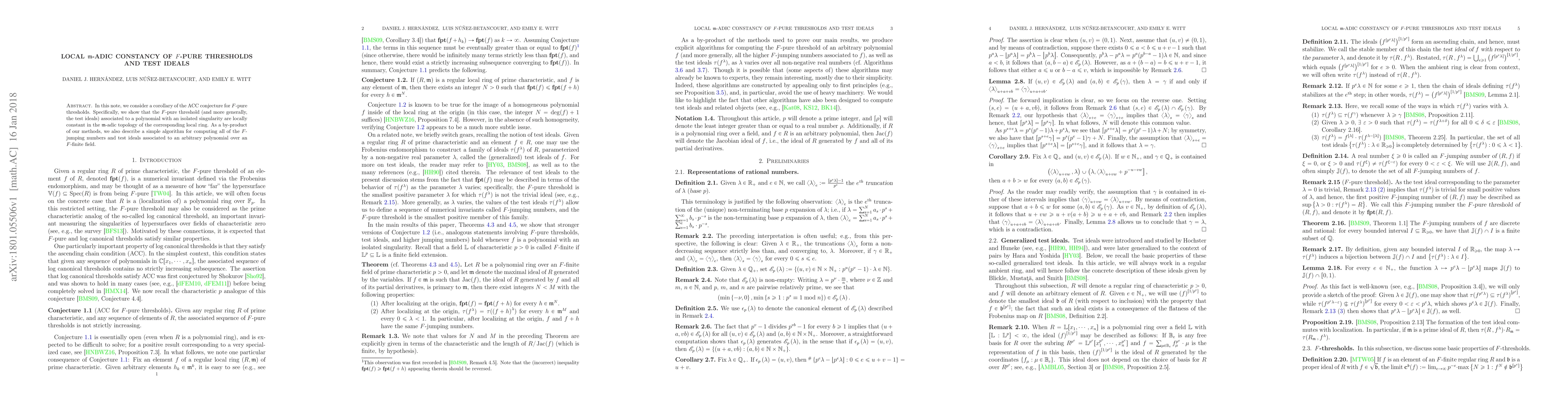 In this note, we consider a corollary of the ACC conjecture for F-pure thresholds. Specifically, we show that the F-pure threshold (and more generally, the test ideals) associated to a polynomial with an isolated singularity are locally constant in the m-adic topology of the corresponding local ring. As a by-product of our methods, we also describe a simple algorithm for computing all of the F-jumping numbers and test ideals associated to an arbitrary polynomial over an F-finite field.