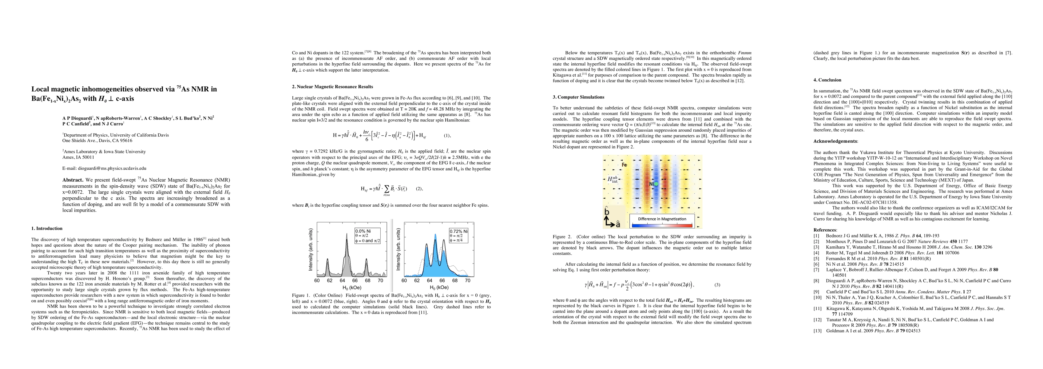 This study uses 75As NMR to investigate local magnetic inhomogeneities in Ba(Fe1-xNix)2As2 with the magnetic field perpendicular to the c-axis, revealing broadening spectra indicative of a commensurate spin-density wave state influenced by local impurities. The results suggest a correlation between doping and the presence of these inhomogeneities.