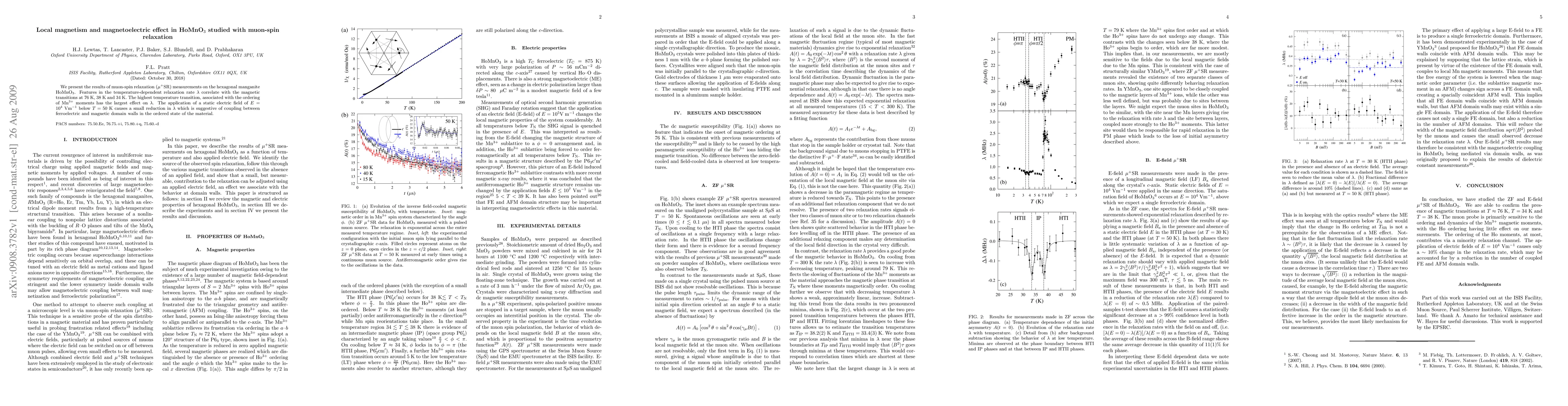 We present the results of muon-spin relaxation (muSR) measurements on the hexagonal manganite HoMnO3. Features in the temperature-dependent relaxation rate, lambda, correlate with the magnetic transitions at 76 K, 38 K and 34 K. The highest temperature transition, associated with the ordering of Mn3+ moments has the largest effect on lambda. The application of a static electric field of E=10^4 Vm^-1 below T=50 K causes a small reduction in lambda which is suggestive of coupling between ferroelectric and magnetic domain walls in the ordered state of the material.