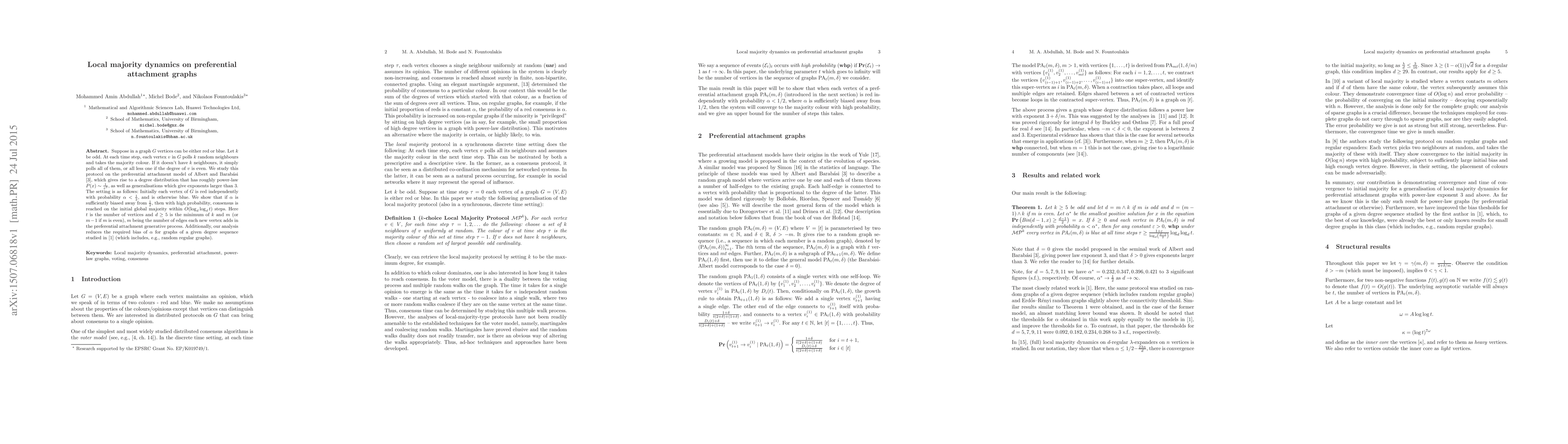 Researchers study how a graph changes color based on the majority vote of its neighbors, finding that with a biased initial setup, consensus can be reached in a relatively small number of steps. The required bias depends on factors such as the number of vertices and edges added to the graph.