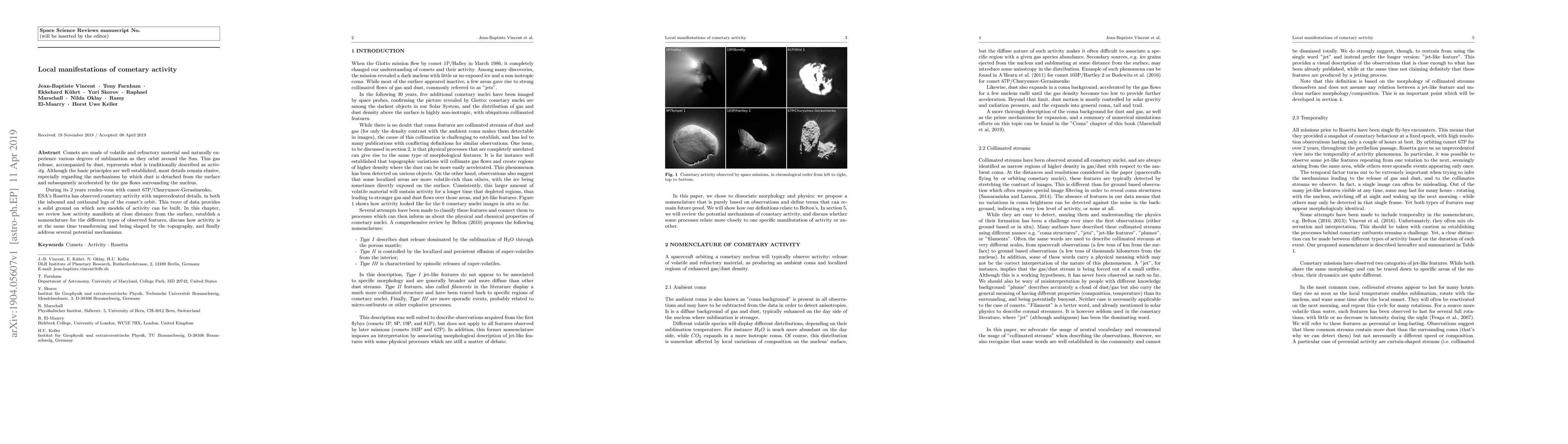 The Rosetta mission's detailed observations of comet 67P/Churyumov-Gerasimenko over two years reveal new insights into cometary activity. These findings help establish a nomenclature for surface features and propose mechanisms for dust detachment and gas flow interaction, paving the way for refined activity models.