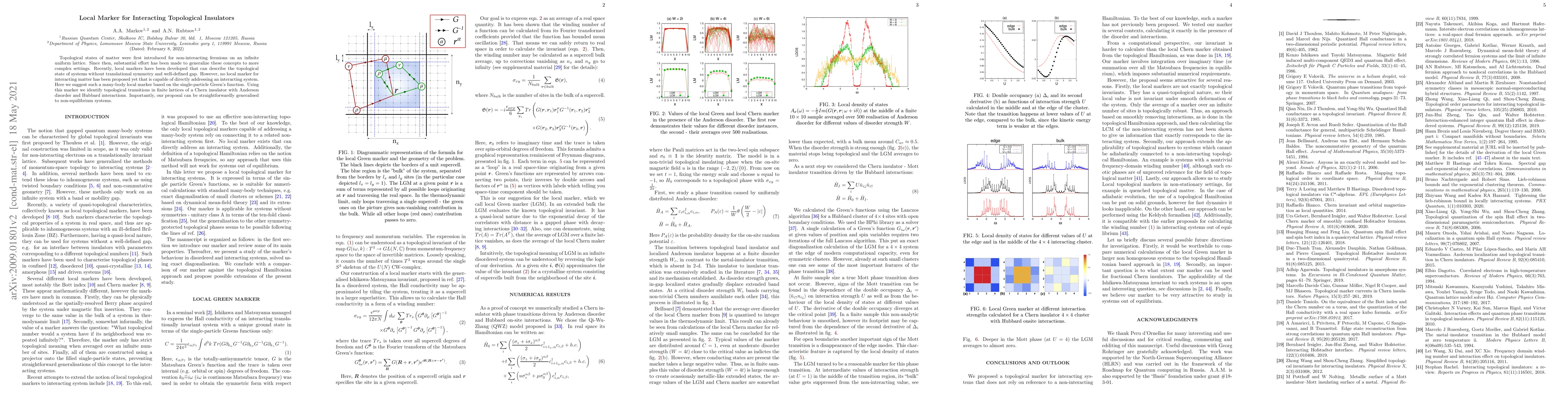 Topological states of matter were first introduced for non-interacting fermions on an infinite uniform lattice. Since then, substantial effort has been made to generalize these concepts to more complex settings. Recently, local markers have been developed that can describe the topological state of systems without translational symmetry and well-defined gap. However, no local marker for interacting matter has been proposed yet that is capable of directly addressing an interacting system. Here we suggest such a many-body local marker based on the single-particle Green's function. Using this marker we identify topological transitions in finite lattices of a Chern insulator with Anderson disorder and Hubbard interactions. Importantly, our proposal can be straightforwardly generalised to non-equilibrium systems.