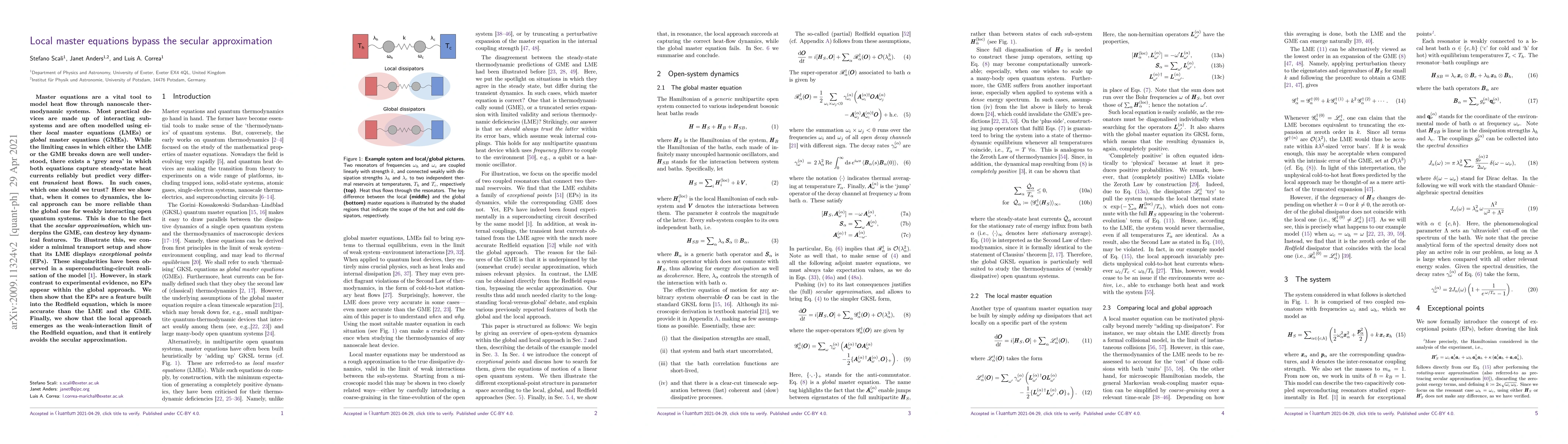 Master equations are a vital tool to model heat flow through nanoscale thermodynamic systems. Most practical devices are made up of interacting sub-system, and are often modelled using either local master equations (LMEs) or global master equations (GMEs). While the limiting cases in which either the LME or the GME breaks down are well understood, there exists a 'grey area' in which both equations capture steady-state heat currents reliably, but predict very different transient heat flows. In such cases, which one should we trust? Here, we show that, when it comes to dynamics, the local approach can be more reliable than the global one for weakly interacting open quantum systems. This is due to the fact that the secular approximation, which underpins the GME, can destroy key dynamical features. To illustrate this, we consider a minimal transport setup and show that its LME displays exceptional points (EPs). These singularities have been observed in a superconducting-circuit realisation of the model [1]. However, in stark contrast to experimental evidence, no EPs appear within the global approach. We then show that the EPs are a feature built into the Redfield equation, which is more accurate than the LME and the GME. Finally, we show that the local approach emerges as the weak-interaction limit of the Redfield equation, and that it entirely avoids the secular approximation.