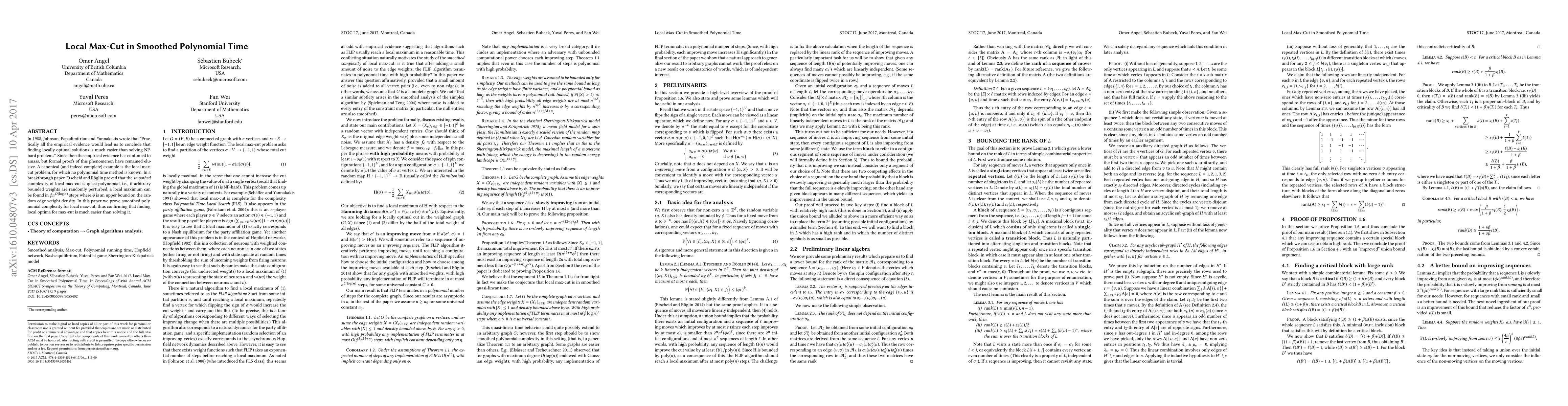 This paper demonstrates that the local max-cut problem can be solved in smoothed polynomial time when weights are subject to random perturbations, confirming earlier empirical observations that finding local optima is significantly easier than solving NP-hard problems. The method achieves this by improving on prior quasi-polynomial time complexity results.