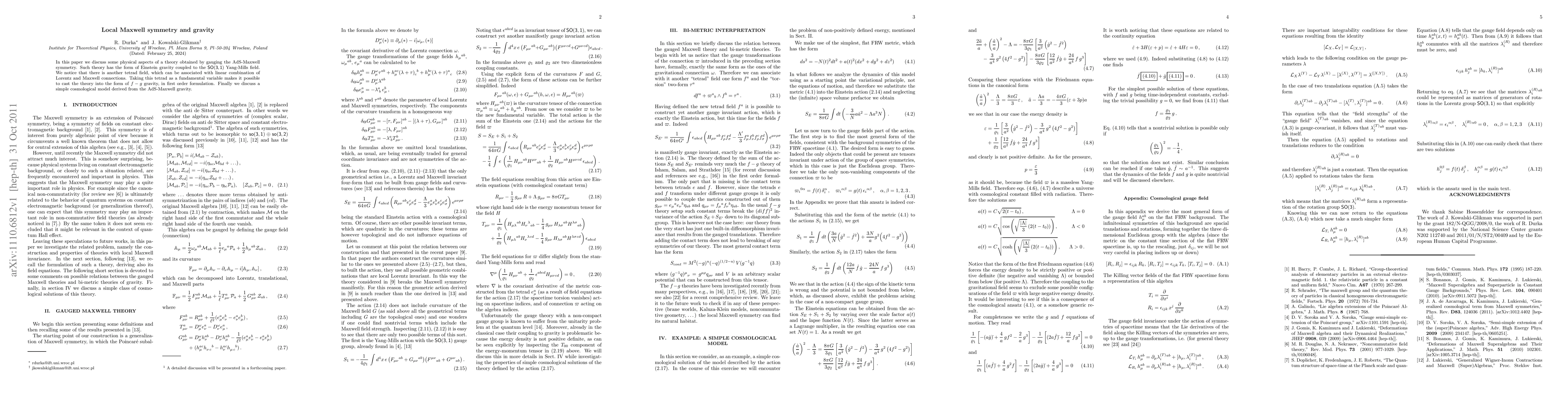 In this paper we discuss some physical aspects of a theory obtained by gauging the AdS-Maxwell symmetry. Such theory has the form of Einstein gravity coupled to the $\sf{SO(3,1)}$ Yang-Mills field. We notice that there is another tetrad field, which can be associated with linear combination of Lorentz and Maxwell connections. Taking this tetrad as a fundamental variable makes it possible to cast the theory into the form of $f-g$ gravity, in first order formulation. Finally we discuss a simple cosmological model derived from the AdS-Maxwell gravity.