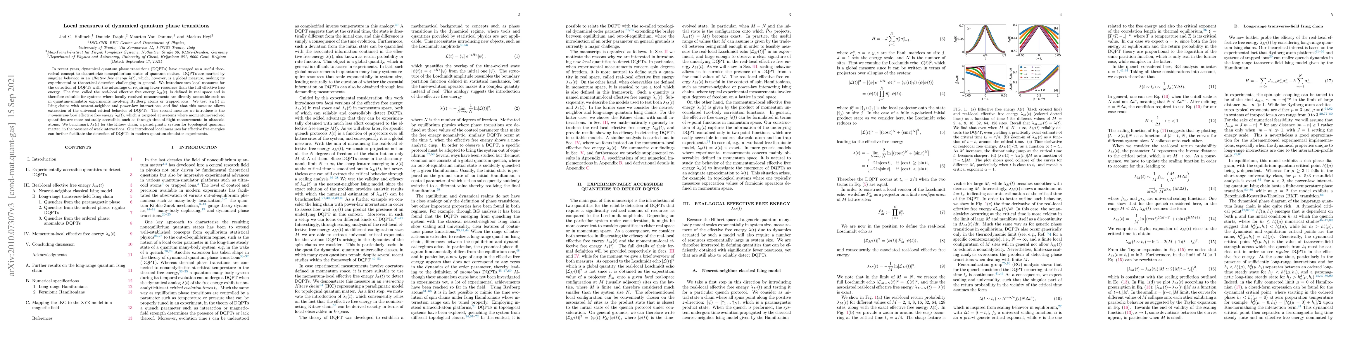 Researchers developed two local measures to detect dynamical quantum phase transitions in quantum systems, providing a more accessible way to study these phenomena, which were tested in several models including Ising chains and the Kitaev chain.