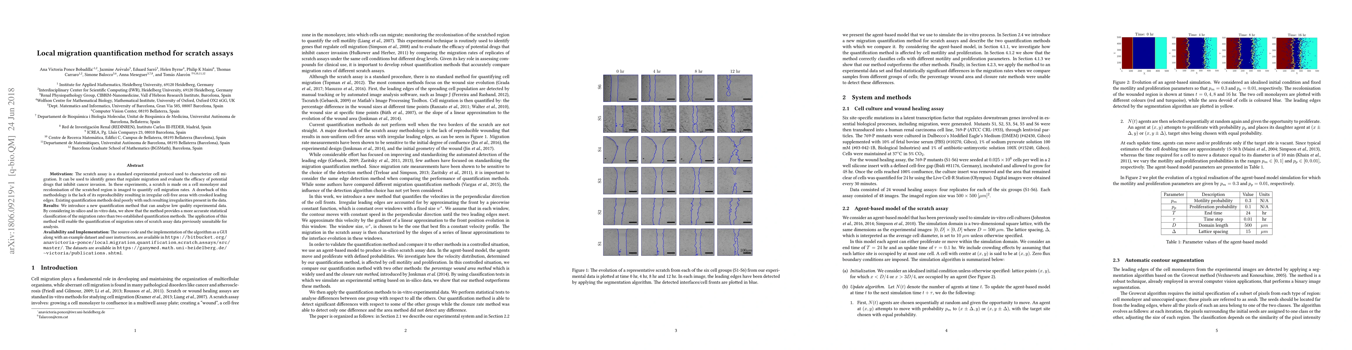 Motivation: The scratch assay is a standard experimental protocol used to characterize cell migration. It can be used to identify genes that regulate migration and evaluate the efficacy of potential drugs that inhibit cancer invasion. In these experiments, a scratch is made on a cell monolayer and recolonisation of the scratched region is imaged to quantify cell migration rates. A drawback of this methodology is the lack of its reproducibility resulting in irregular cell-free areas with crooked leading edges. Existing quantification methods deal poorly with such resulting irregularities present in the data. Results: We introduce a new quantification method that can analyse low quality experimental data. By considering in-silico and in-vitro data, we show that the method provides a more accurate statistical classification of the migration rates than two established quantification methods. The application of this method will enable the quantification of migration rates of scratch assay data previously unsuitable for analysis. Availability and Implementation: The source code and the implementation of the algorithm as a GUI along with an example dataset and user instructions, are available in https://bitbucket.org/anavictoria-ponce/local_migration_quantification_scratch_assays/src/master/. The datasets are available in https://ganymed.math.uni-heidelberg.de/~victoria/publications.shtml.