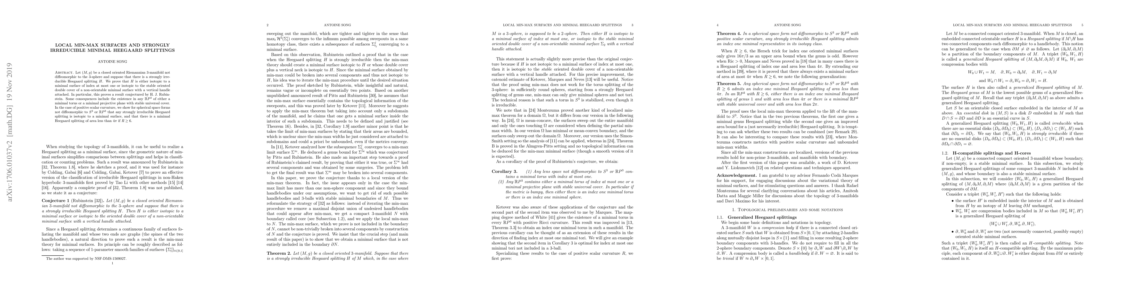 Let $(M,g)$ be a closed oriented Riemannian $3$-manifold and suppose that there is a strongly irreducible Heegaard splitting $H$. We prove that $H$ is either isotopic to a minimal surface of index at most one or isotopic to the stable oriented double cover of a non-orientable minimal surface with a vertical handle attached. In particular, this proves a result conjectured by Rubinstein. Some consequences include the existence in any $\mathbb{R}P^3$ of either a minimal torus or a minimal projective plane with stable universal cover. In the case of positive scalar curvature, it is shown for spherical space forms not diffeomorphic to $S^3$ or $\mathbb{R}P^3$ that any strongly irreducible Heegaard splitting admits a minimal representative in its isotopy class, and that there is a minimal Heegaard splitting of area less than $4\pi$ if $R\geq 6$.