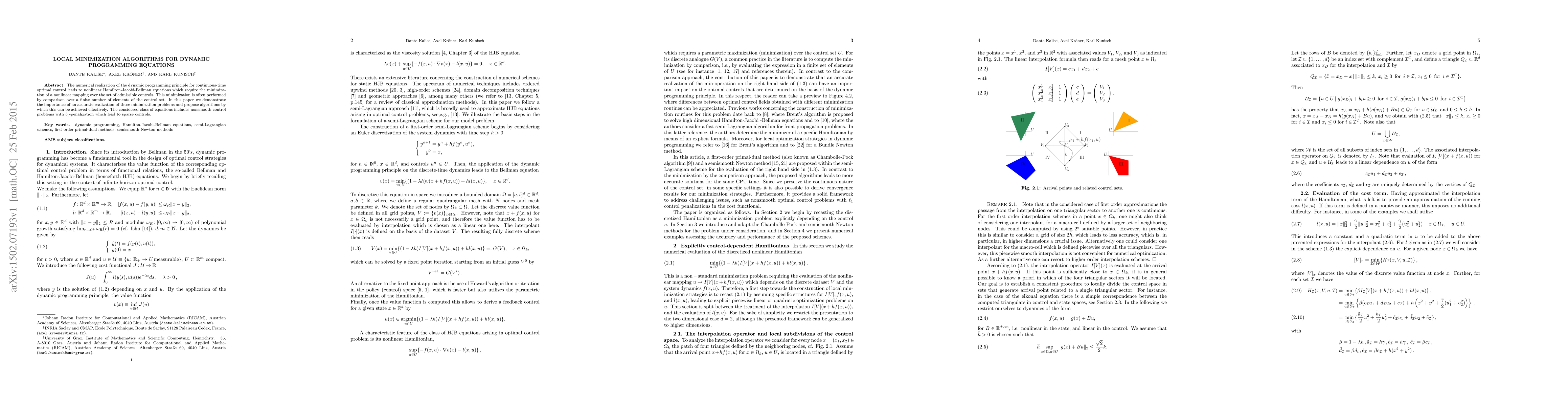 The numerical realization of the dynamic programming principle for continuous-time optimal control leads to nonlinear Hamilton-Jacobi-Bellman equations which require the minimization of a nonlinear mapping over the set of admissible controls. This minimization is often performed by comparison over a finite number of elements of the control set. In this paper we demonstrate the importance of an accurate realization of these minimization problems and propose algorithms by which this can be achieved effectively. The considered class of equations includes nonsmooth control problems with $\ell_1$-penalization which lead to sparse controls.