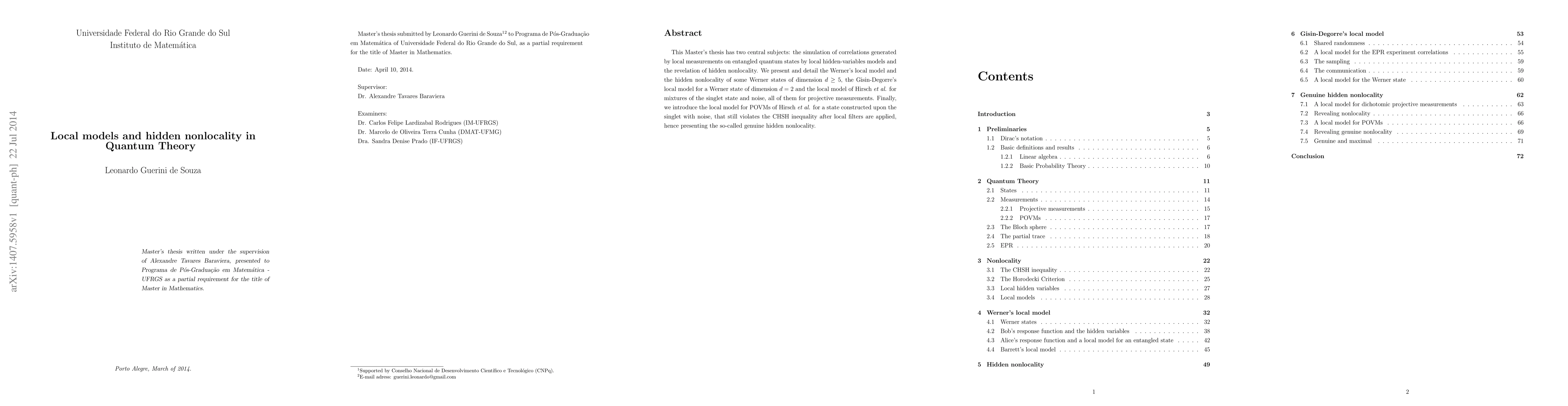 This Master's thesis has two central subjects: the simulation of correlations generated by local measurements on entangled quantum states by local hidden-variables models and the revelation of hidden nonlocality. We present and detail the Werner's local model and the hidden nonlocality of some Werner states of dimension $d\geq5$, the Gisin-Degorre's local model for a Werner state of dimension $d=2$ and the local model of Hirsch et al. for mixtures of the singlet state and noise, all of them for projective measurements. Finally, we introduce the local model for POVMs of Hirsch et al. for a state constructed upon the singlet with noise, that still violates the CHSH inequality after local filters are applied, hence presenting the so-called genuine hidden nonlocality.
