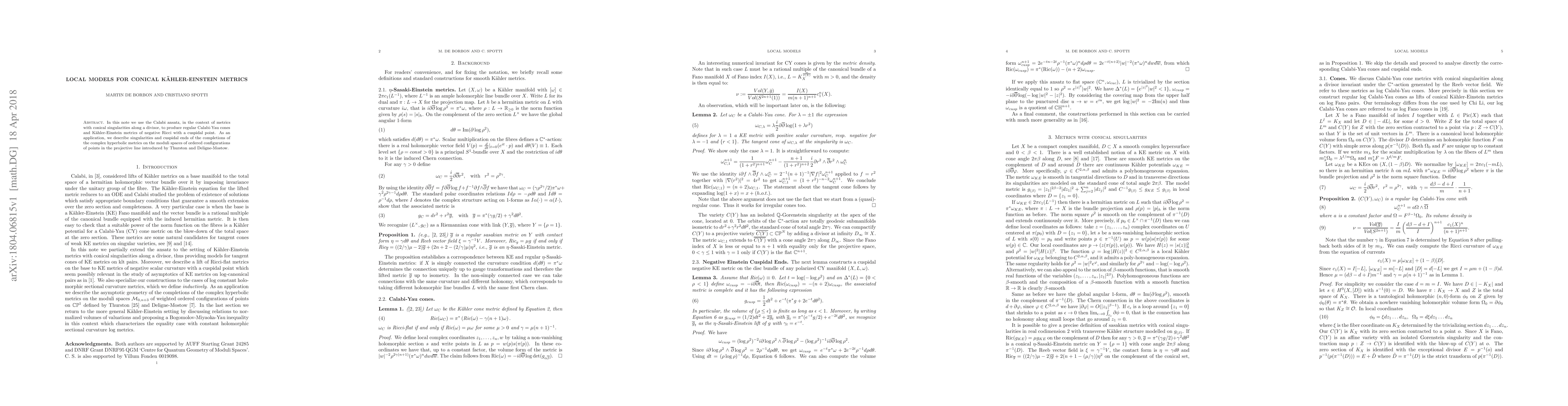 Summary: This research utilizes the Calabi ansatz to construct regular Calabi-Yau cones and Kähler-Einstein metrics with conical singularities, applying it to describe singularities in complex hyperbolic metrics on moduli spaces of point configurations.