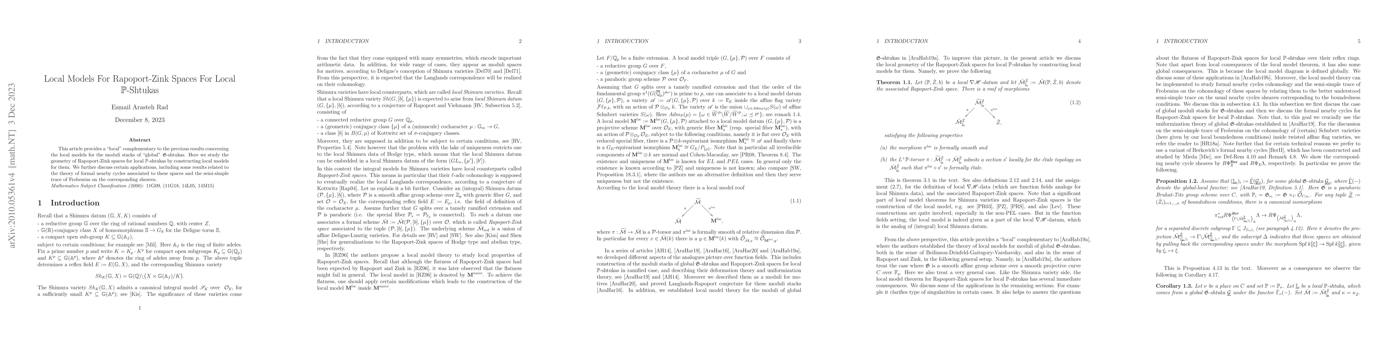 This paper constructs local models for Rapoport-Zink spaces of local $P$-shtukas, providing a complementary approach to the global case. It explores applications in the theory of formal nearby cycles and the semi-simple trace of Frobenius.