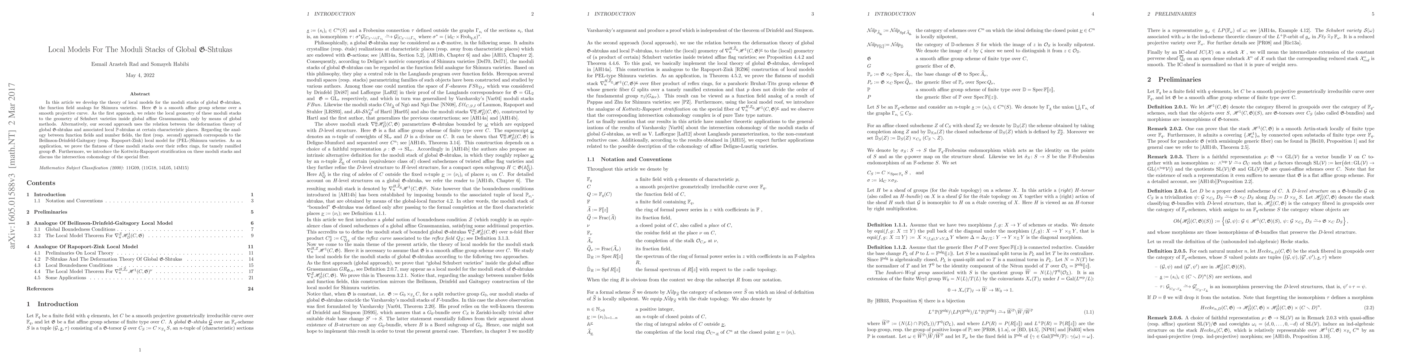 The research develops the theory of local models for the moduli stacks of global $G$-shtukas using global methods and relating to deformation theory of global $G$-shtukas and associated local $P$-shtukas at characteristic places.