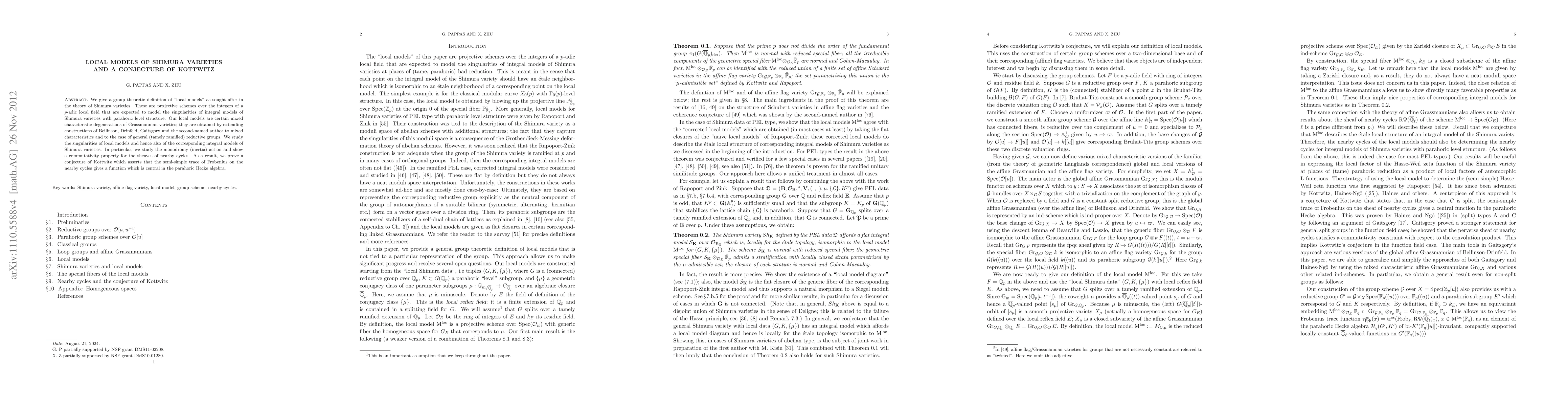This paper defines "local models" for Shimura varieties as projective schemes over the integers of a $p$-adic local field, modeling singularities of integral models with parahoric level structure. It proves a conjecture of Kottwitz by demonstrating a commutativity property for the sheaves of nearby cycles and showing that the semi-simple trace of Frobenius is central in the parahoric Hecke algebra.