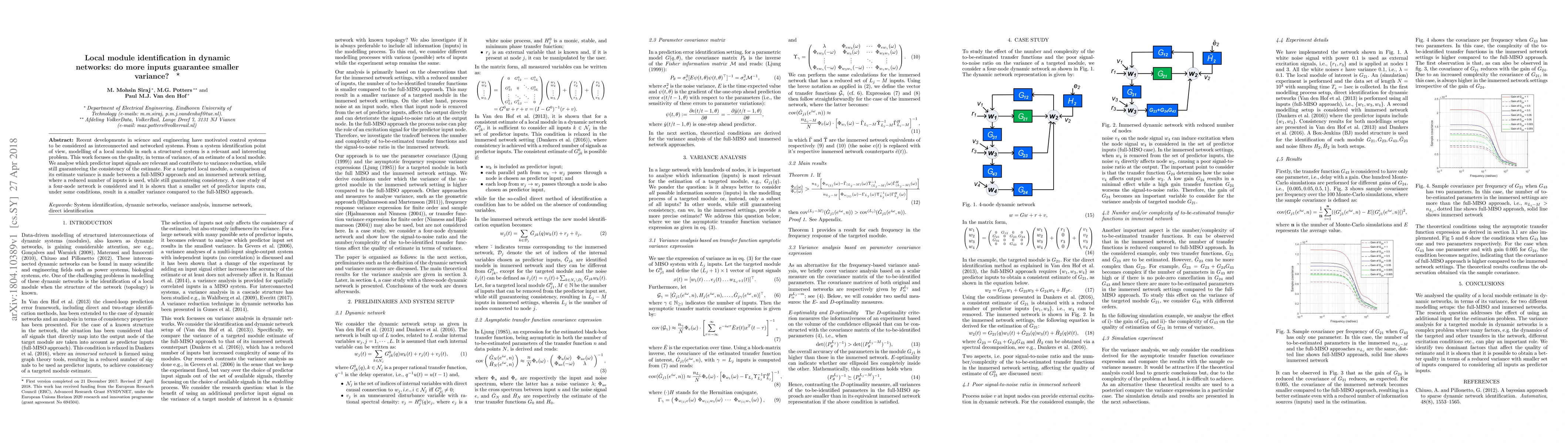 A study found that reducing the number of input signals in a network can sometimes lead to a smaller variance in estimates of local modules, while still maintaining consistency.
