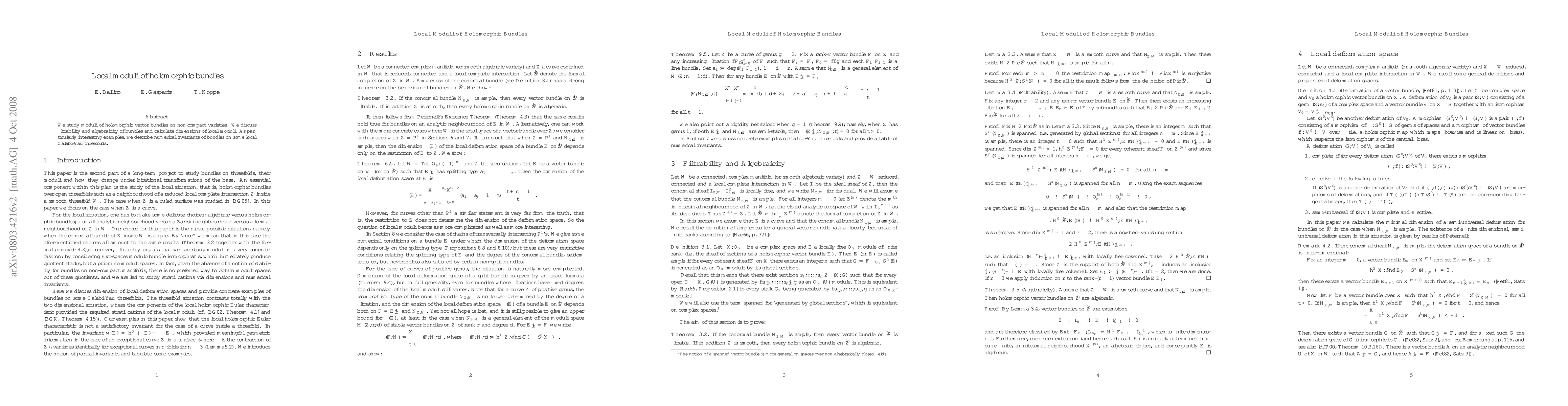 This paper investigates the moduli of holomorphic vector bundles on non-compact varieties, focusing on filtrability, algebraicity, and calculating the dimensions of local moduli. It provides examples of numerical invariants of bundles on local Calabi-Yau threefolds.