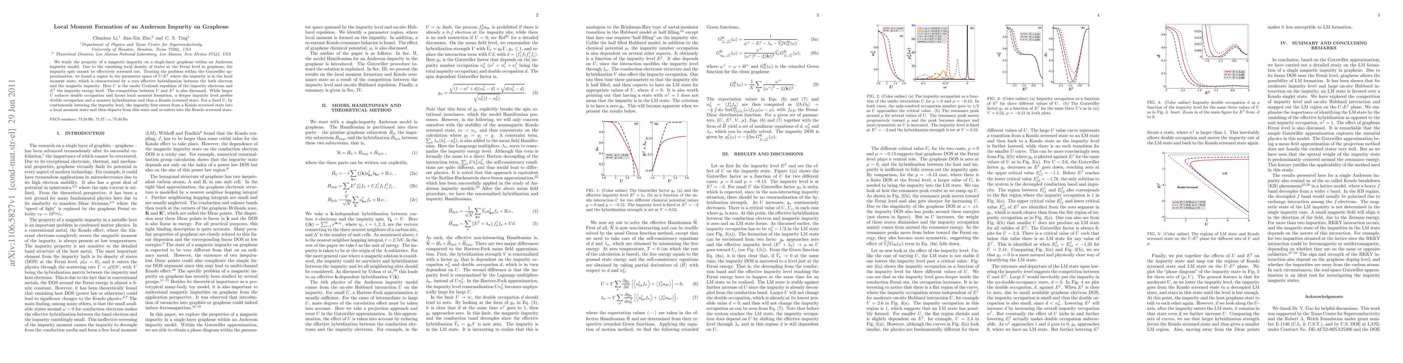 This study investigates a magnetic impurity on graphene using the Anderson impurity model, finding that due to graphene's zero local density of states at the Fermi level, the impurity maintains a local moment state characterized by zero effective hybridization. The interplay between onsite Coulomb repulsion $U$ and impurity energy level $E^f$ determines whether the impurity remains in a local moment or Kondo screened state.