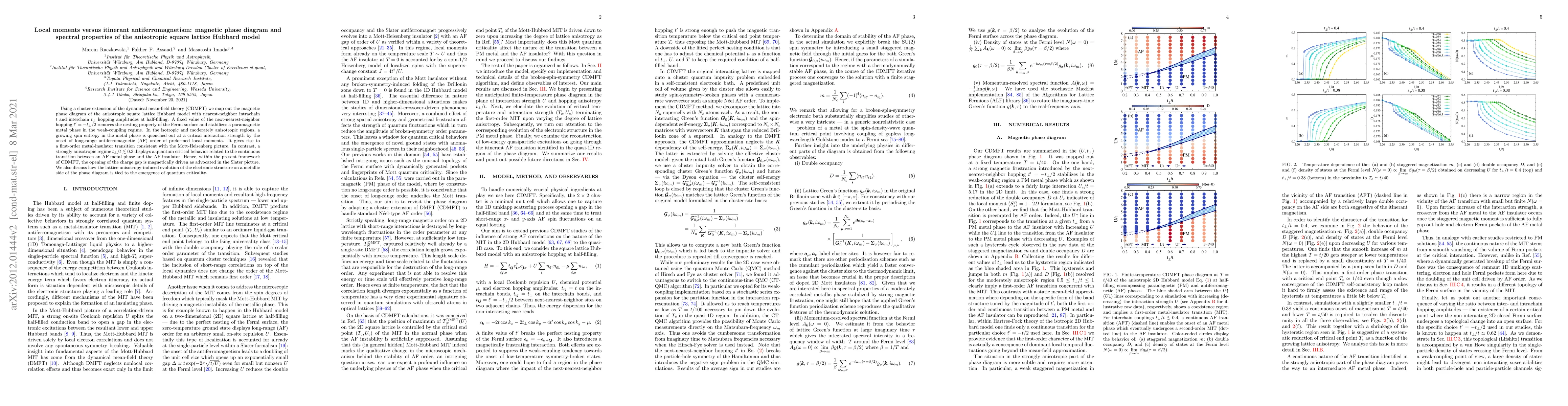 This paper uses cluster dynamical mean-field theory to explore the magnetic phase diagram of the anisotropic square lattice Hubbard model, revealing a transition from itinerant antiferromagnetism to local moment magnetism, and identifying a quantum critical behavior in the strongly anisotropic regime. The study highlights the interplay between lattice anisotropy and the emergence of magnetic order and quantum criticality.