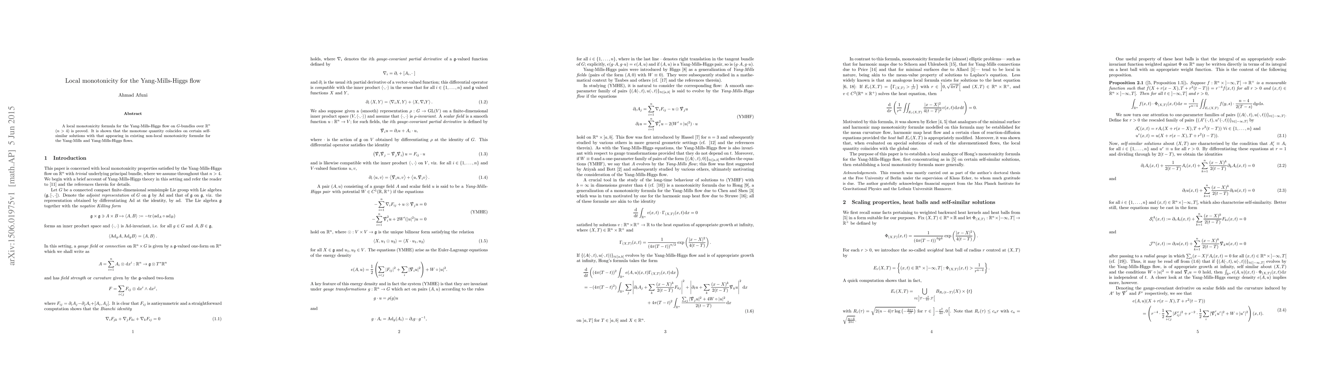 A local monotonicity formula for the Yang-Mills-Higgs flow on $G$-bundles over $\mathbb{R}^{n}$ ($n>4$) is proved. It is shown that the monotone quantity co\"incides on certain self-similar solutions with that appearing in existing non-local monotonicity formul\ae\ for the Yang-Mills and Yang-Mills-Higgs flows.