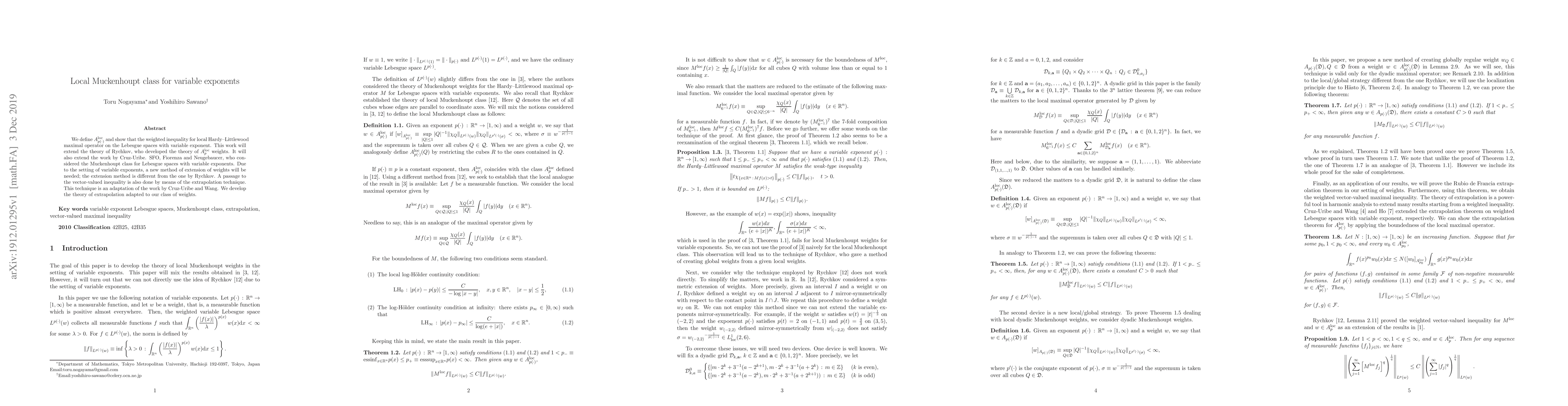 This paper defines a local Muckenhoupt class for variable exponents, extending the theory of local $A_p$ weights and adapting the extrapolation technique for vector-valued inequalities. It introduces a new method for extending weights, distinct from previous approaches.