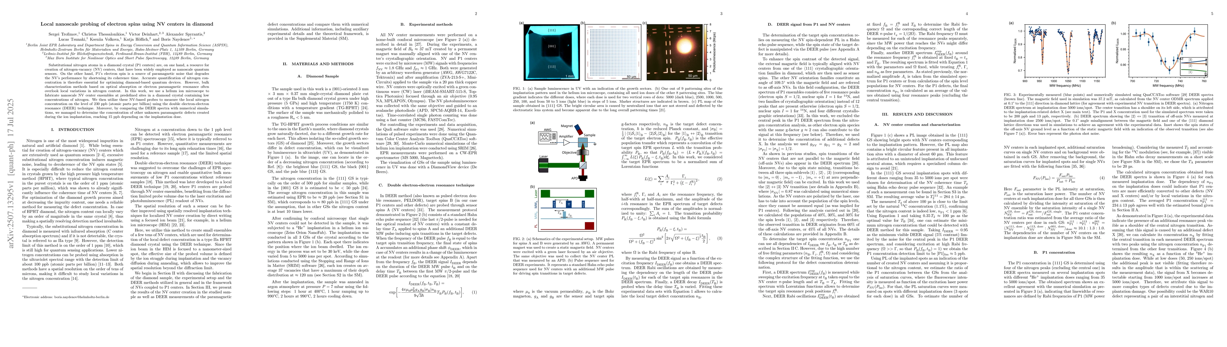 Substitutional nitrogen atoms in a diamond crystal (P1 centers) are, on one hand, a resource for creation of nitrogen-vacancy (NV) centers, that have been widely employed as nanoscale quantum sensors. On the other hand, P1's electron spin is a source of paramagnetic noise that degrades the NV's performance by shortening its coherence time. Accurate quantification of nitrogen concentration is therefore essential for optimizing diamond-based quantum devices. However, bulk characterization methods based on optical absorption or electron paramagnetic resonance often overlook local variations in nitrogen content. In this work, we use a helium ion microscope to fabricate nanoscale NV center ensembles at predefined sites in a diamond crystal containing low concentrations of nitrogen. We then utilize these NV-based probes to measure the local nitrogen concentration on the level of 230 ppb (atomic parts per billion) using the double electron-electron resonance (DEER) technique. Moreover, by comparing the DEER spectra with numerical simulations, we managed to determine the concentration of other unknown paramagnetic defects created during the ion implantation, reaching 15 ppb depending on the implantation dose.