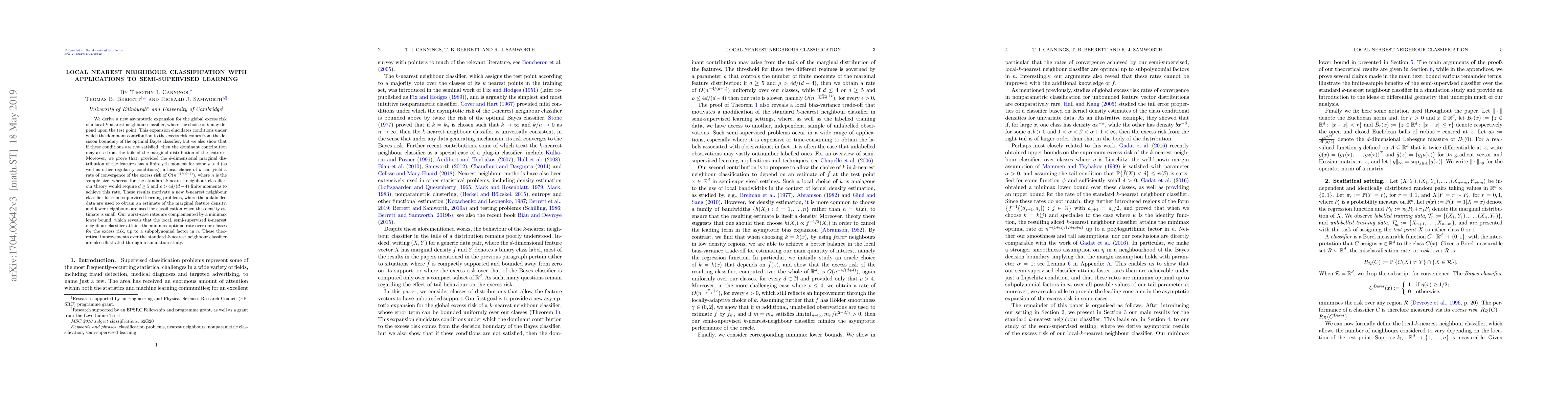 This paper develops a new local $k$-nearest neighbour classifier with improved asymptotic convergence rates, especially for high-dimensional data, and applies it to semi-supervised learning. The theoretical analysis shows that local $k$ selection can achieve optimal rates under milder conditions compared to the standard $k$-nearest neighbour method.