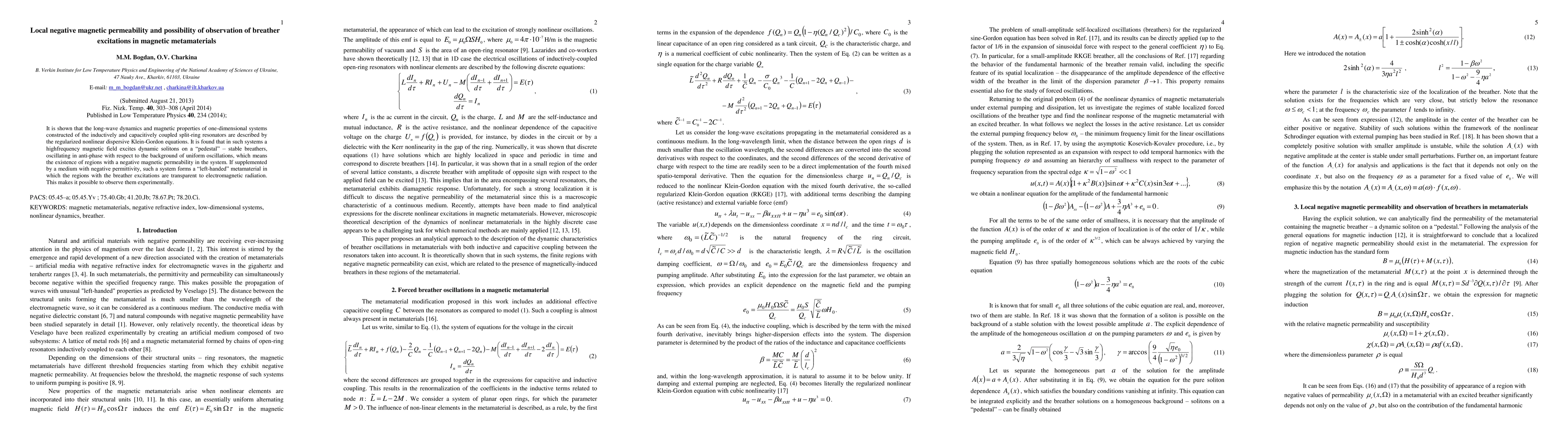 This paper explores the dynamics of magnetic metamaterials composed of coupled split-ring resonators, revealing the excitation of dynamic solitons known as breathers under high-frequency magnetic fields. The presence of these breathers indicates regions with local negative magnetic permeability, enabling the observation of such phenomena in left-handed metamaterials.