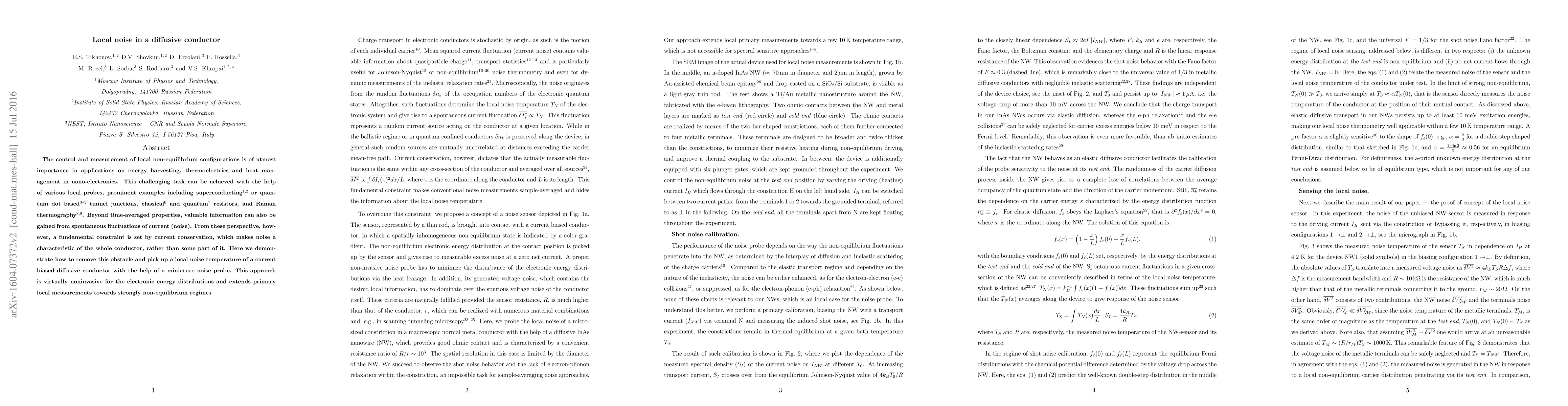 Researchers developed a non-invasive method to measure local noise temperature in diffusive conductors, overcoming current conservation constraints and enabling the study of strongly non-equilibrium regimes.
