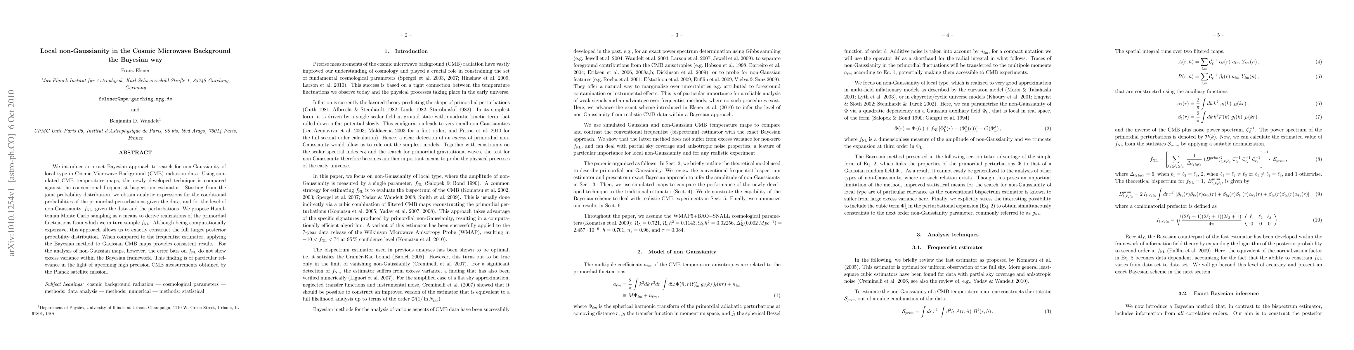This paper introduces a novel Bayesian method to detect local non-Gaussianity in Cosmic Microwave Background (CMB) radiation, comparing it to the traditional frequentist bispectrum estimator. The Bayesian approach provides exact posterior distributions, yielding consistent results for Gaussian CMB data and more precise error bars for non-Gaussian maps.