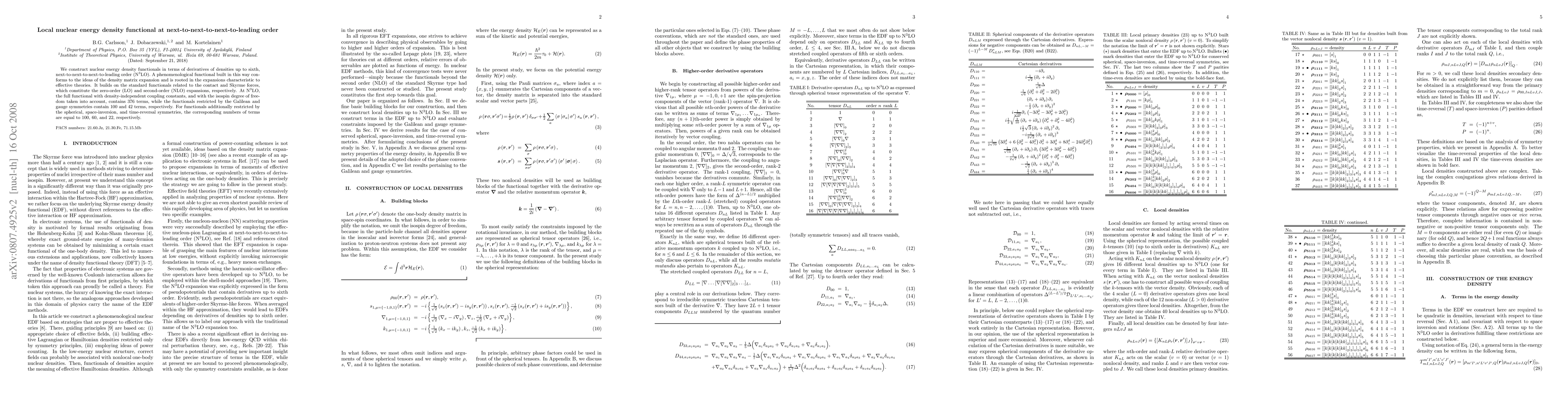 We construct nuclear energy density functionals in terms of derivatives of densities up to sixth, next-to-next-to-next-to-leading order (N3LO). A phenomenological functional built in this way conforms to the ideas of the density matrix expansion and is rooted in the expansions characteristic to effective theories. It builds on the standard functionals related to the contact and Skyrme forces, which constitute the zero-order (LO) and second-order (NLO) expansions, respectively. At N3LO, the full functional with density-independent coupling constants, and with the isospin degree of freedom taken into account, contains 376 terms, while the functionals restricted by the Galilean and gauge symmetries contain 100 and 42 terms, respectively. For functionals additionally restricted by the spherical, space-inversion, and time-reversal symmetries, the corresponding numbers of terms are equal to 100, 60, and 22, respectively.