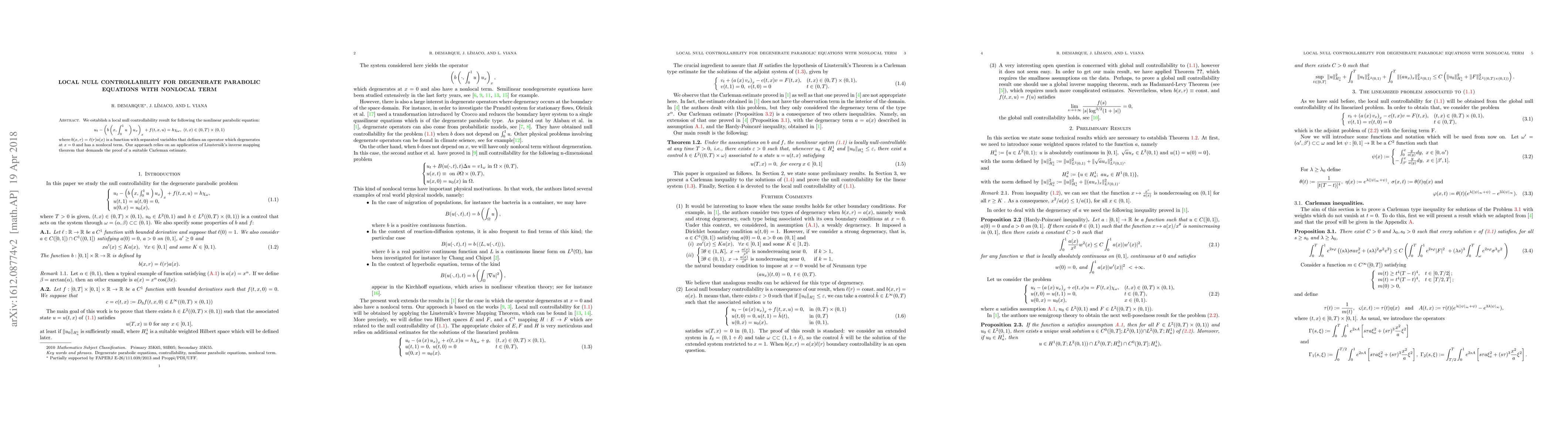 Summary: This paper establishes local null controllability for a degenerate parabolic equation with a nonlocal term, utilizing Liusternik's inverse mapping theorem and proving a suitable Carleman estimate. The equation features a function that degenerates at a boundary point and incorporates a nonlocal term.