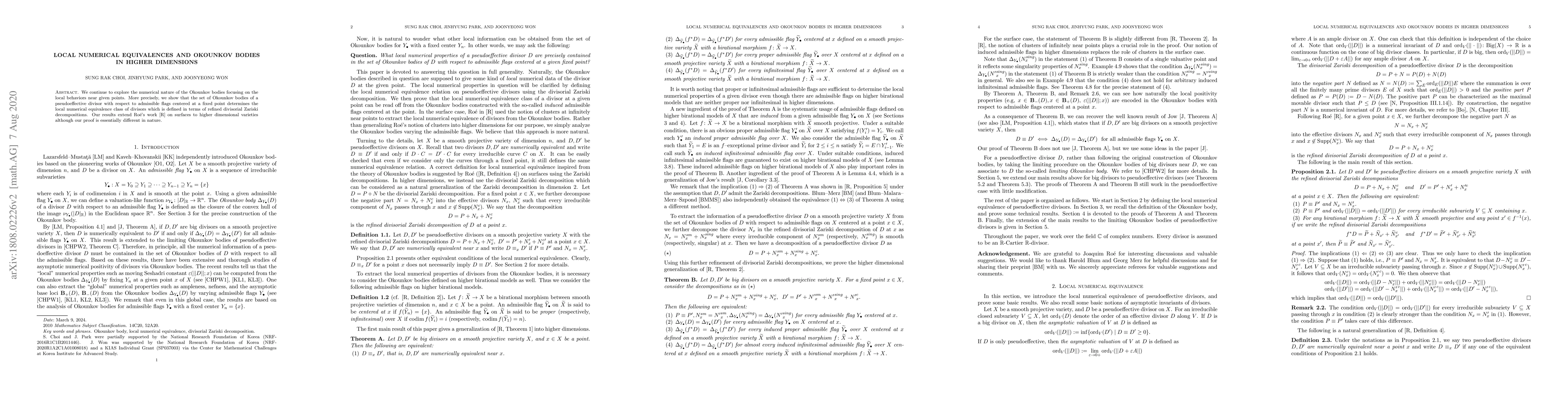This paper extends Roe's work on the local numerical equivalences of Okounkov bodies to higher-dimensional varieties, demonstrating that the set of Okounkov bodies for a pseudoeffective divisor around a fixed point determines the local numerical equivalence class, based on refined divisorial Zariski decompositions, with a different proof approach.