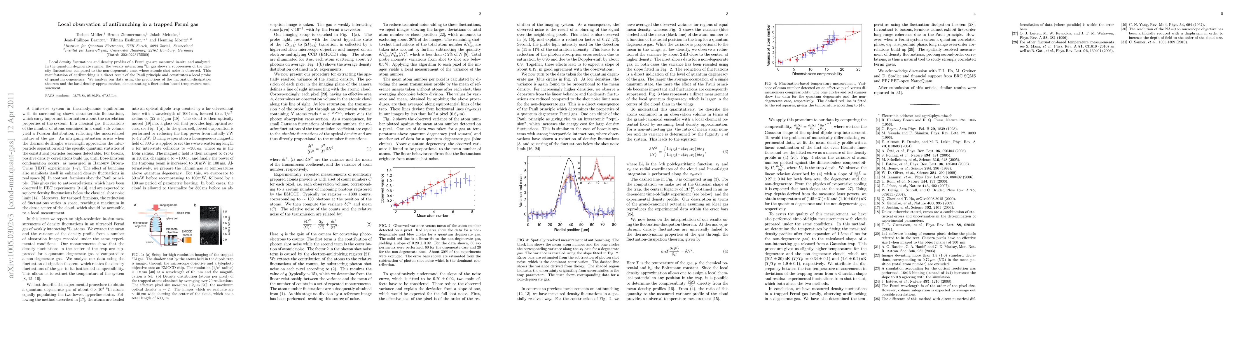 Local density fluctuations and density profiles of a Fermi gas are measured in-situ and analyzed. In the quantum degenerate regime, the weakly interacting $^6$Li gas shows a suppression of the density fluctuations compared to the non-degenerate case, where atomic shot noise is observed. This manifestation of antibunching is a direct result of the Pauli principle and constitutes a local probe of quantum degeneracy. We analyze our data using the predictions of the fluctuation-dissipation theorem and the local density approximation, demonstrating a fluctuation-based temperature measurement.