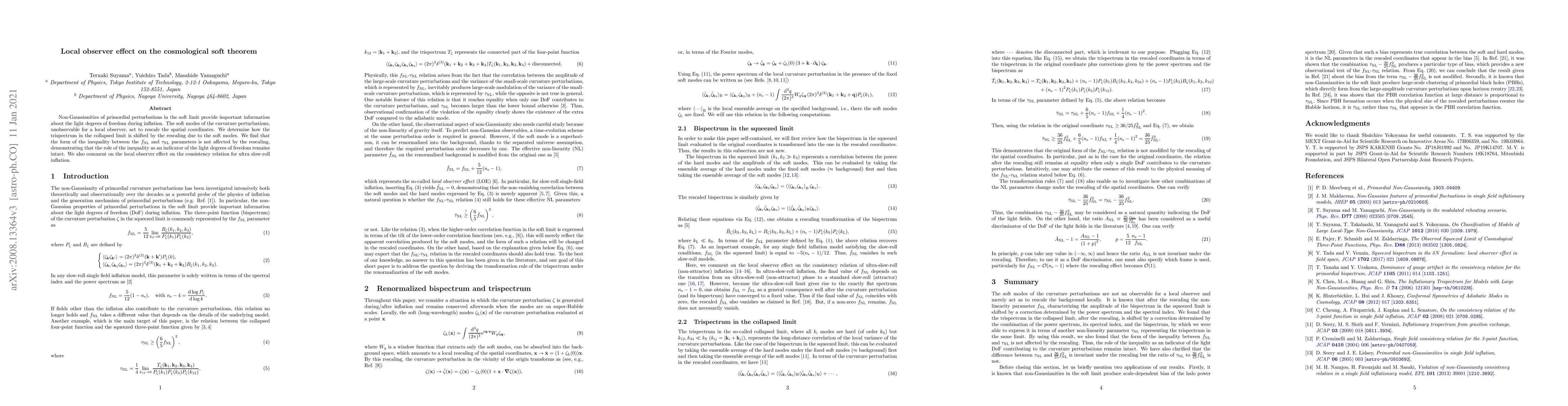 Research investigates how soft modes of primordial perturbations affect cosmological predictions, finding that local observer effects do not alter the relationship between certain parameters, indicating their role in detecting light degrees of freedom during inflation.