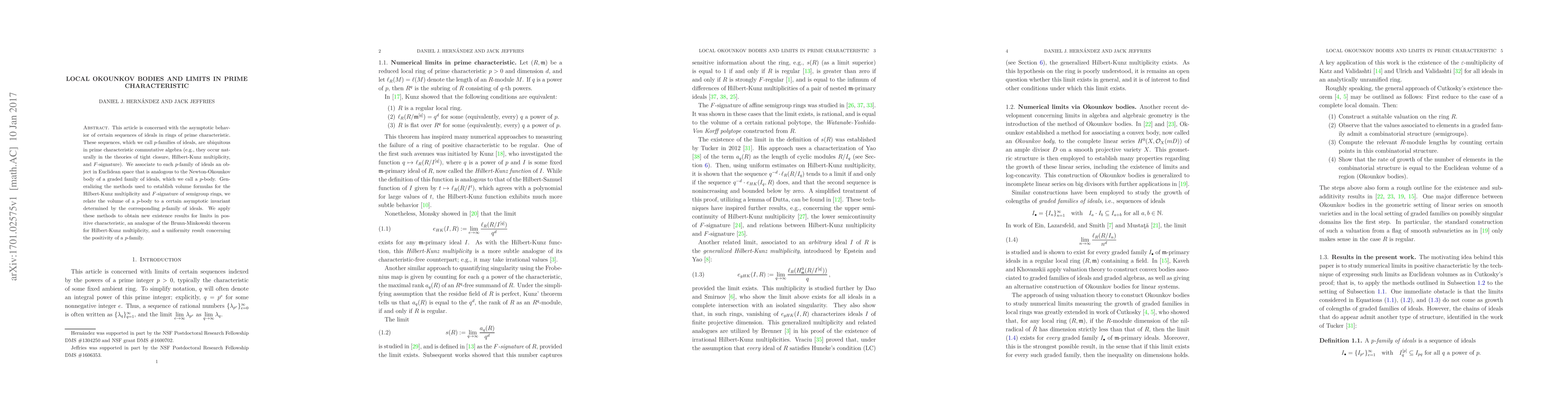 This paper studies the asymptotic behavior of $p$-families of ideals in prime characteristic commutative algebra, introducing $p$-bodies analogous to Newton-Okounkov bodies. It establishes volume formulas for these $p$-bodies and uses these to prove new existence results for limits in positive characteristic and a Brunn-Minkowski-like theorem.