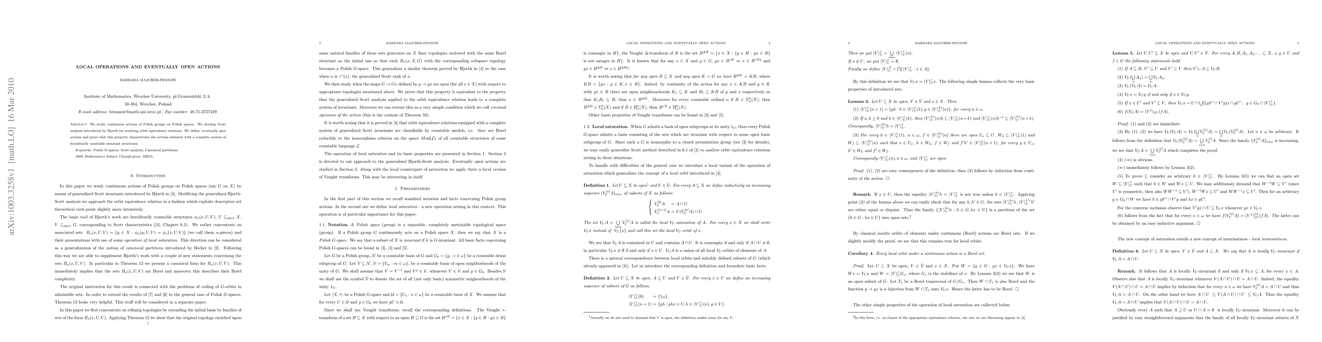We study continuous actions of Polish groups on Polish spaces. We develop Scott analysis introduced by Hjorth for studying orbit equivalence relations. We define eventually open actions and prove that this property characterizes the actions endowed with a complete system of hereditarily countable invariant structures.