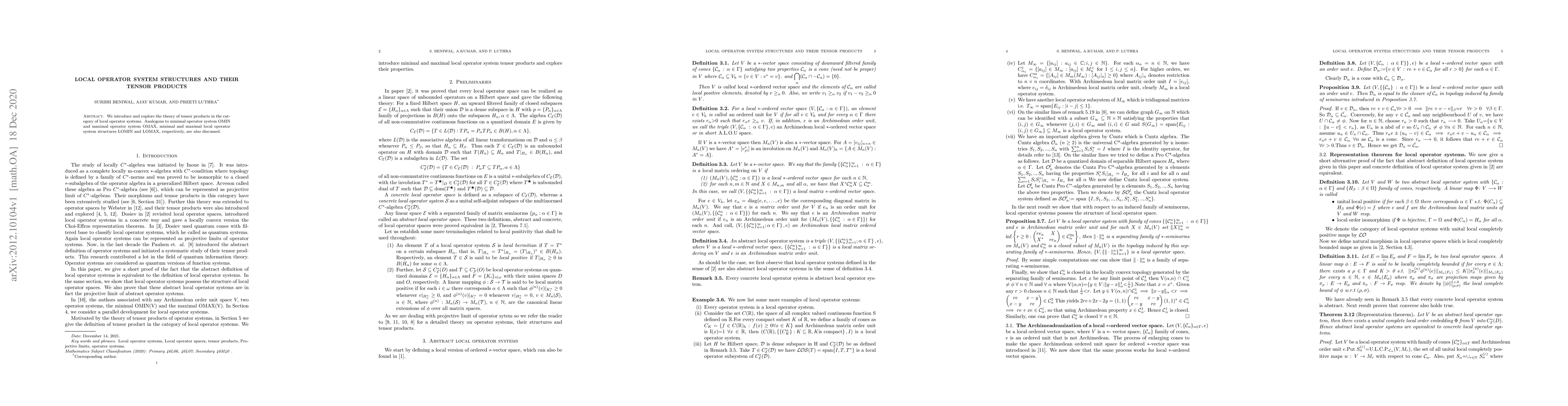This paper introduces and investigates tensor products within the framework of local operator systems, discussing both minimal (LOMIN) and maximal (LOMAX) structures analogous to their operator system counterparts. The focus is on understanding how these structures behave under tensor product operations.