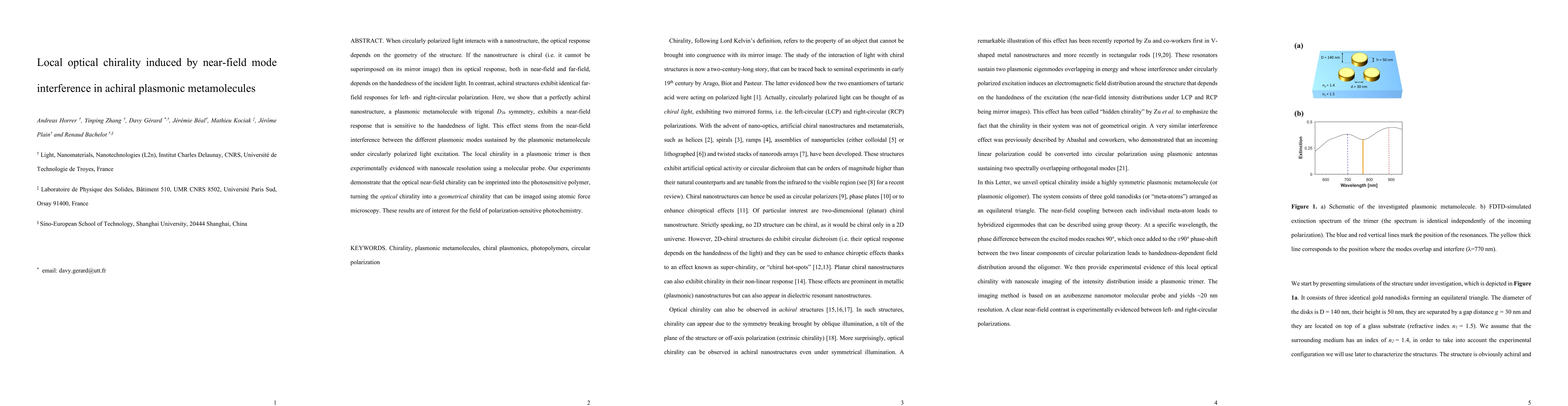 This paper demonstrates that achiral plasmonic metamolecules can exhibit local optical chirality due to near-field mode interference when exposed to circularly polarized light. The study uses nanoscale resolution techniques to show that this induced chirality can be imprinted onto photosensitive polymers and visualized using atomic force microscopy.