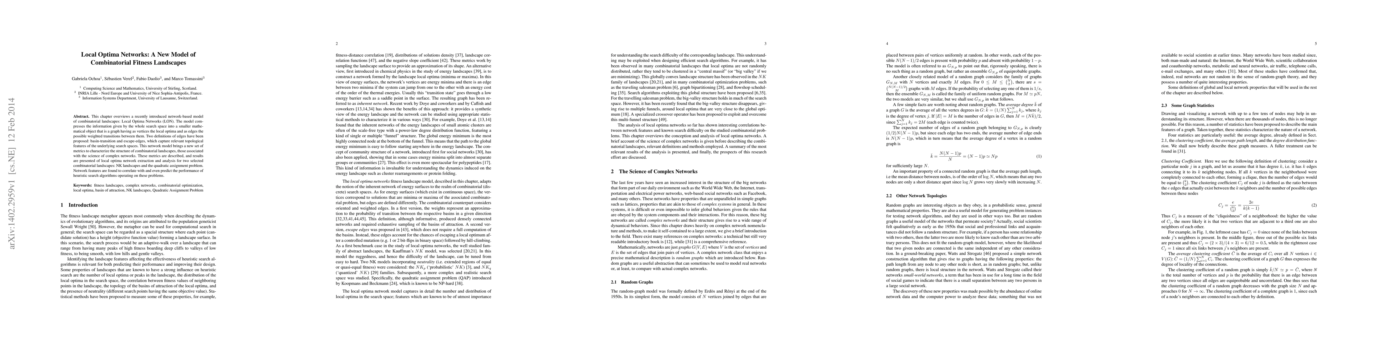 This paper introduces Local Optima Networks (LON) as a new model to represent combinatorial landscapes, compressing the search space into a graph of local optima and weighted transitions. The model correlates network features with the performance of heuristic search algorithms on NK landscapes and the quadratic assignment problem.