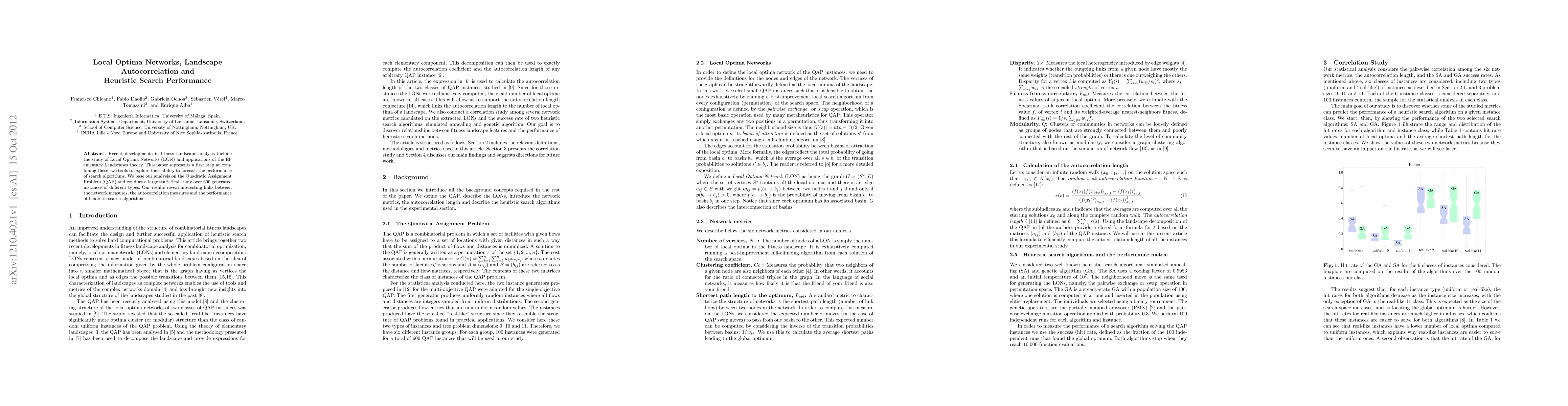 This paper combines Local Optima Networks (LON) and Elementary Landscapes theory to forecast the performance of heuristic search algorithms, using the Quadratic Assignment Problem (QAP) for analysis. Results show significant correlations between network measures, autocorrelation, and heuristic search performance.