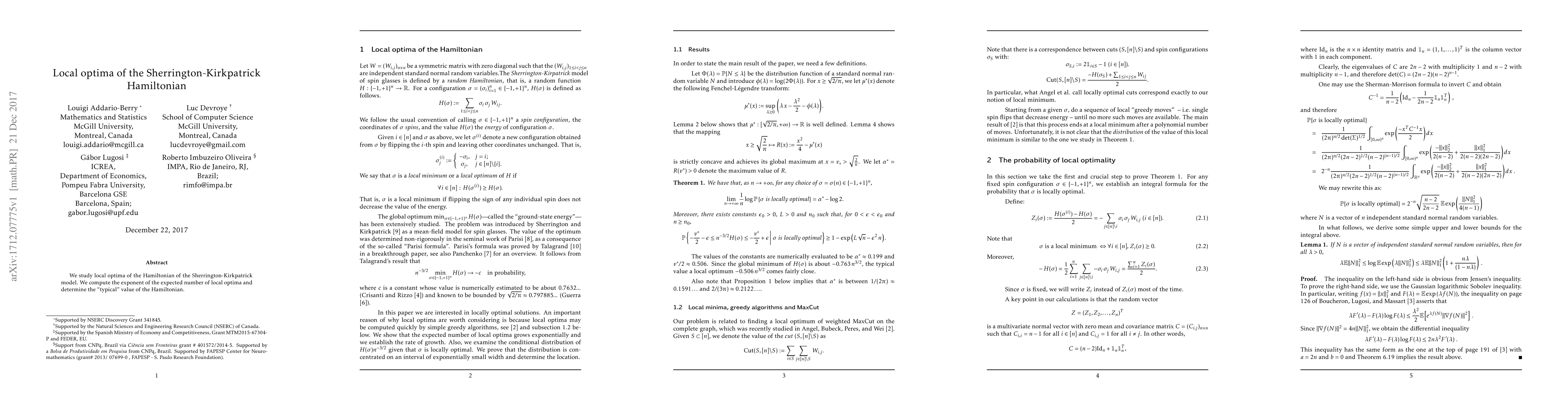 Summary: This paper investigates the local optima within the Sherrington-Kirkpatrick Hamiltonian model, calculating the exponent for the expected number of local optima and identifying the typical value of the Hamiltonian.