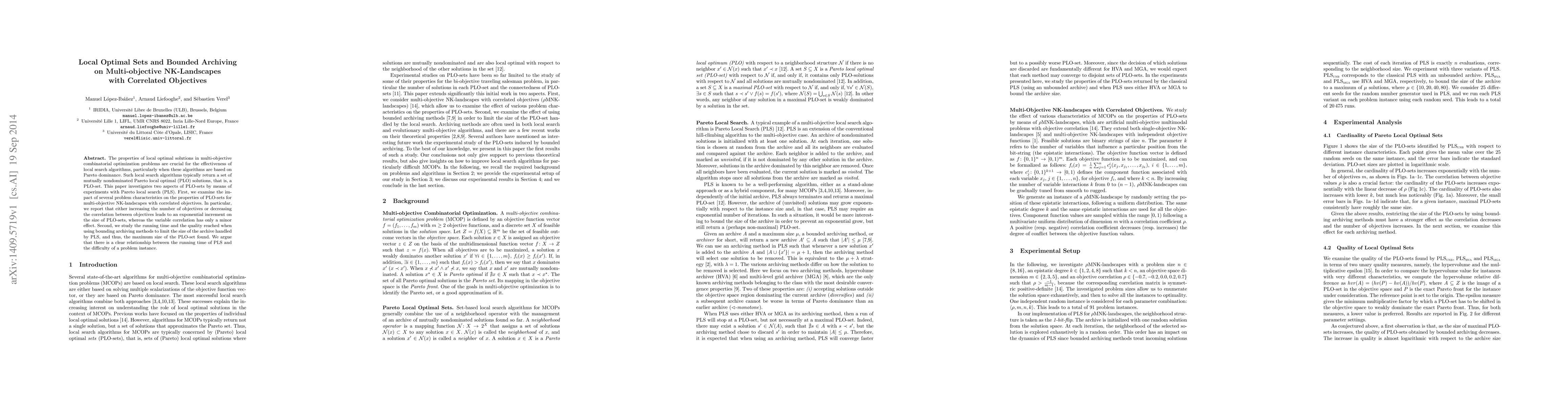 This paper explores the properties of Pareto local optimal sets (PLO-sets) in multi-objective NK-landscapes, finding that increasing objectives or decreasing objective correlation exponentially increases PLO-set size. It also investigates the impact of bounding archiving on PLS running time and PLO-set quality, concluding that problem difficulty correlates with PLS running time.